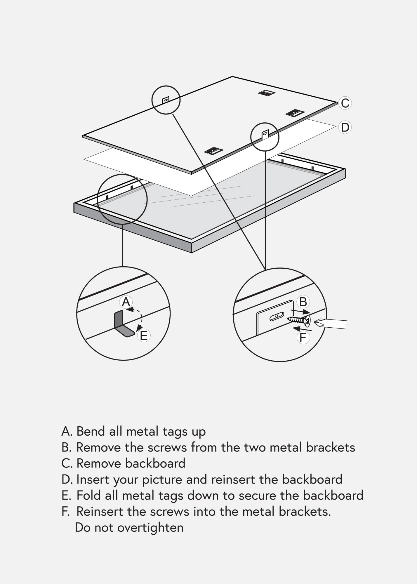 Ta okvir za slike je opremljen z kovinskimi obešalniki na zadnji strani, kar omogoča enostavno obešanje tako vodoravno kot navpično. To vam omogoča prilagodljivost, da prilagodite dekoracijo sten po svojih potrebah in željah. Okvir iz akrilnega stekla je kristalno čist in ne lomljiv, kar zagotavlja, da so vaše slike zaščitene, obenem pa so predstavljene na najboljši možni način.