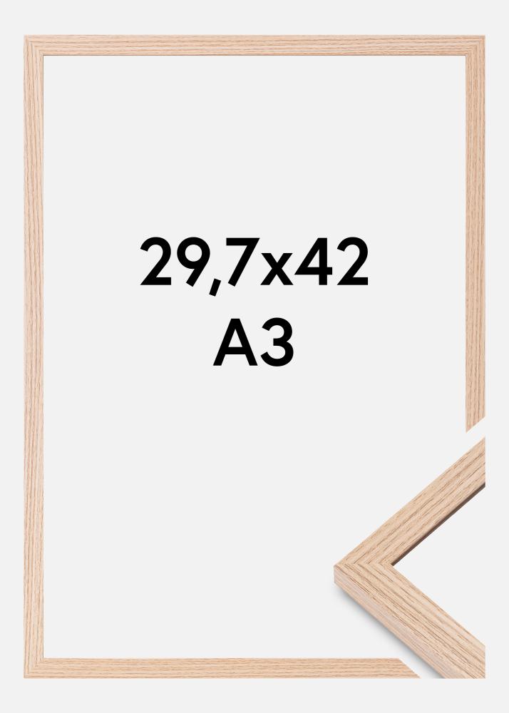 Ta vsestranski okvir je na voljo v več velikostih, vendar je različica 29,7 x 42 cm (A3) popolna za standardne velikosti tiskov in diplom. Ne glede na to, ali želite ustvariti sodobno stensko galerijo ali samo potrebujete preprosto rešitev za predstavitev zadnjega umetniškega nakupa, je naš hrastov okvir z vzorcem hrasta očitna izbira.
