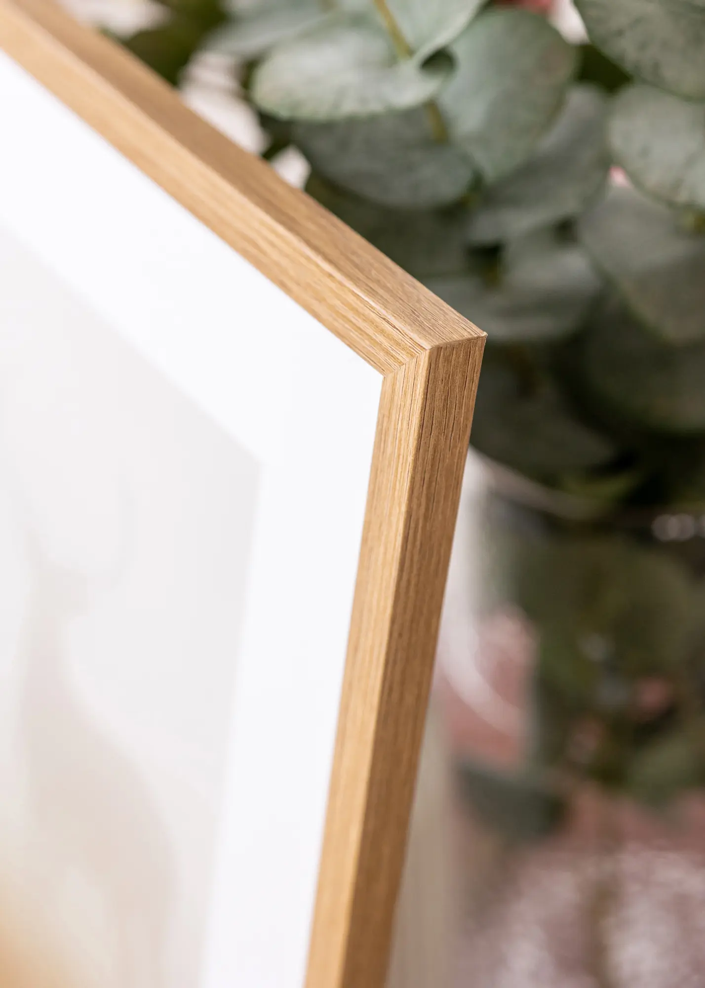 Ta okvir za slike ima tanek in minimalističen profil z okvirno letvijo, ki meri 14 mm v širino in globino 15 mm. To daje okvirju diskreten vendar prefinjen videz, ki omogoča, da vaš motiv ostane v središču pozornosti. Okvir je opremljen z kovinskimi obešalniki na zadnji strani, kar omogoča enostavno obešanje tako horizontalno kot vertikalno, odvisno od tega, kaj najbolj ustreza vašemu prostoru.