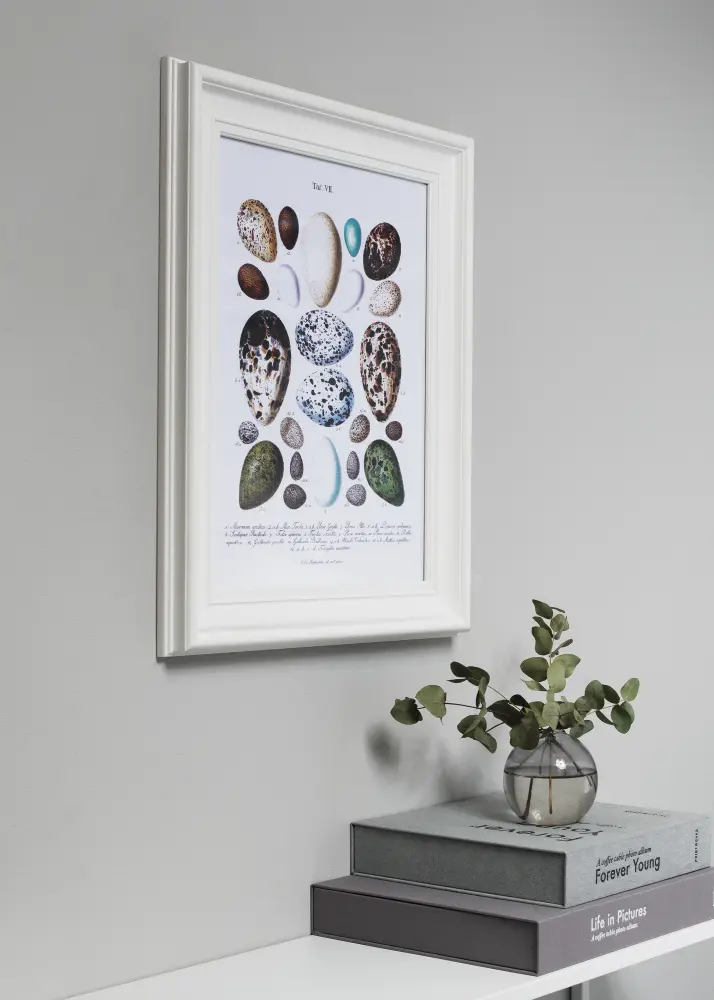Mora Premium Bela je eden naših najlepših okvirjev za slike. Izdelana je iz lesa iz naših lepih švedskih gozdov in sestavljena v naši lastni delavnici za okvirje. To nam omogoča, da obljubimo kakovost, ki presega običajno. Okvir ima eleganten širok beli profil s celimi 57 mm. Popoln za vaše najlepše slike!