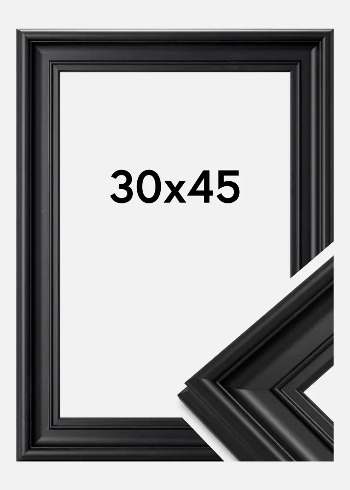 Mora Premium Črna je eden izmed naših najboljših okvirjev za slike. Izdelana je iz lesa iz naših lepih švedskih gozdov in sestavljena v naši delavnici za okvirje. To nam omogoča, da obljubljamo kakovost, ki presega običajno. Okvir ima eleganten širok črn profil širine 57 mm. Popoln za vaše najlepše slike!