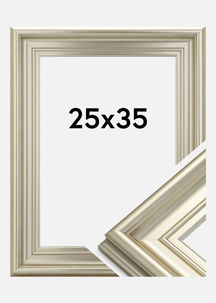 Mora Premium Silver je eden izmed naših najlepših srebrnih okvirjev. Izdelan je iz lesa naših lepih švedskih gozdov in sestavljen v naši lastni delavnici za okvirje. To nam omogoča zagotavljanje kakovosti, ki presega običajno. Okvir ima mehko srebrno profil v starem pobarvanem slogu s širino kar 57 mm. Popoln za vaše najlepše slike!