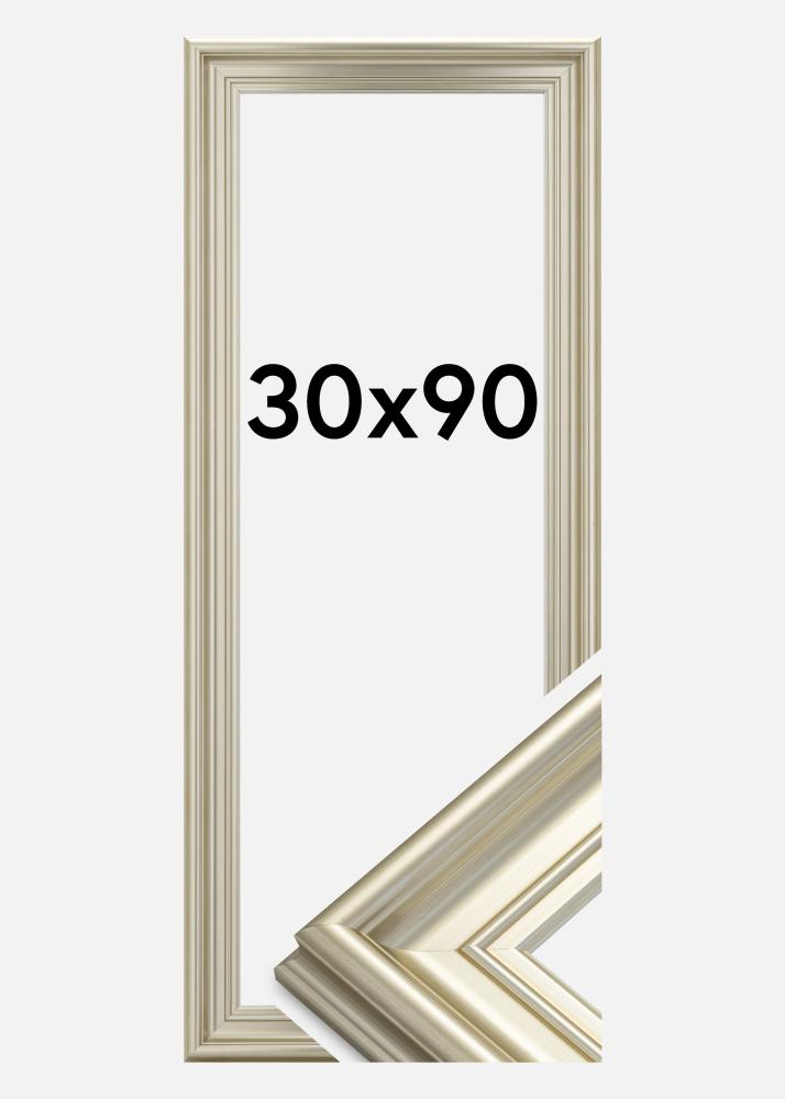 Mora Premium Silver je eden naših najfinejših srebrnih okvirjev. Izdelan iz lesa iz naših čudovitih švedskih gozdov in sestavljen v naši delavnici za okvirje. To nam omogoča, da zagotavljamo kakovost nad običajno. Okvir ima mehko srebrno profilirano površino v starem poslikanem slogu s širino kar 57 mm. Popoln za vaše najlepše slike!