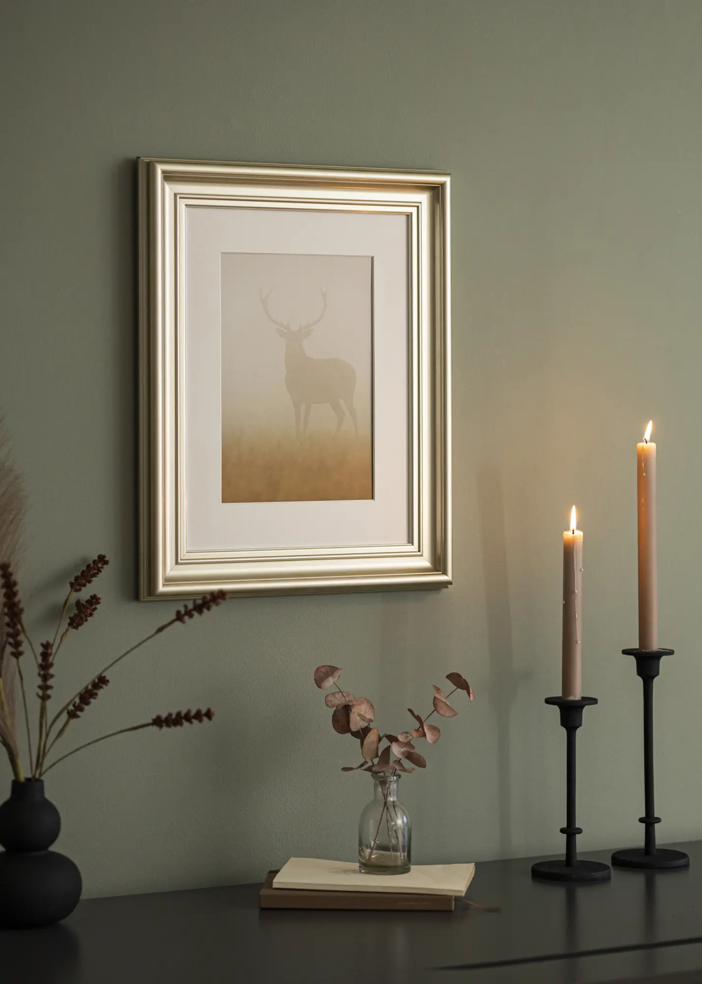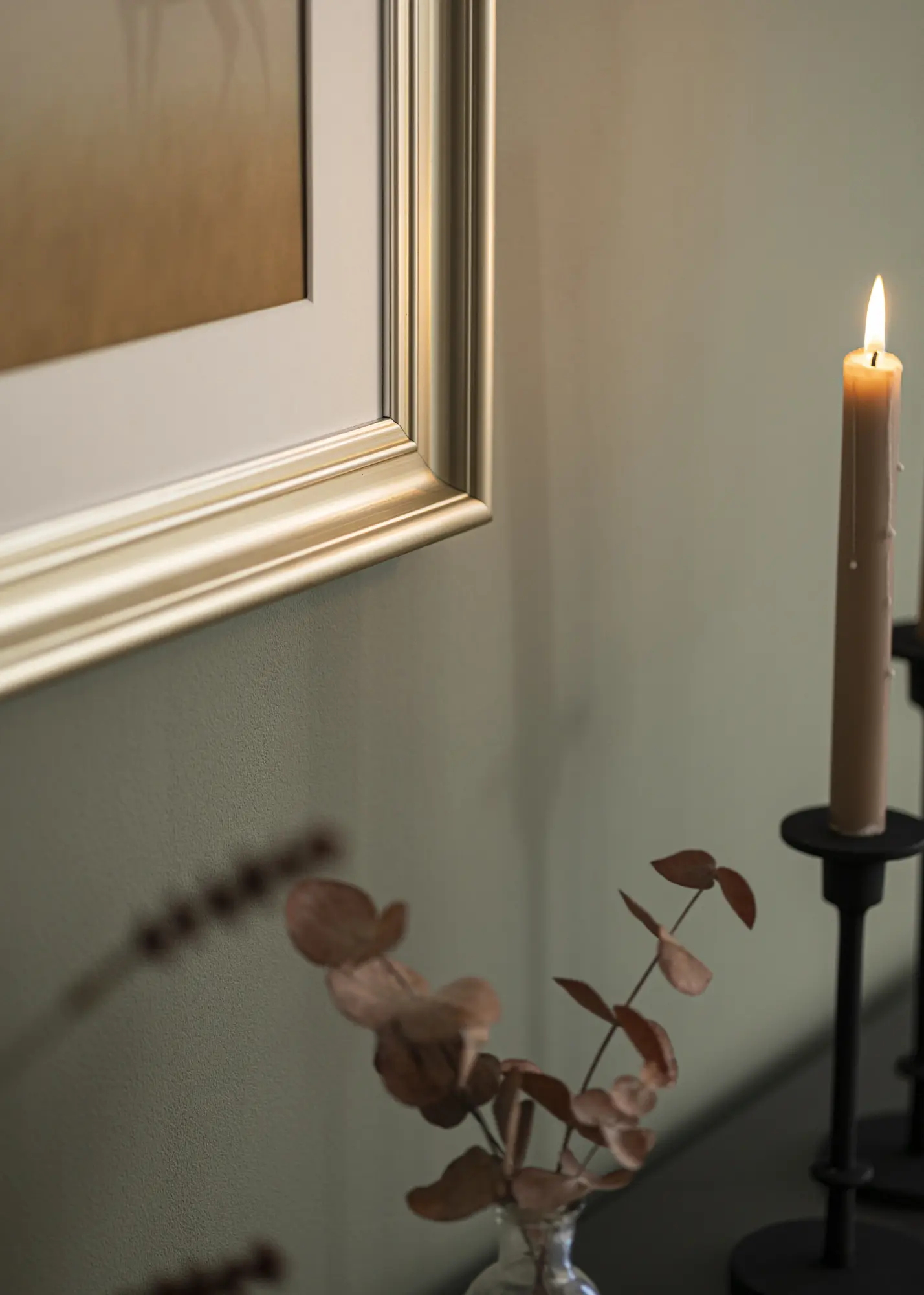 Mora Premium Silver je eden naših najfinejših srebrnih okvirjev. Izdelan je iz lesa iz naših prekrasnih švedskih gozdov in sestavljen v lastni delavnici za okvirje. To nam omogoča, da obljubimo kakovost, ki presega običajno. Okvir ima mehko srebrno profilirano starinsko barvino širine 57 mm. Popoln za vaše najlepše slike!