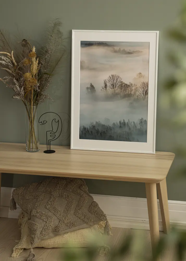 Doživite elegantno preprostost z našim belim okvirjem, ki je opremljen z belo paspartu za poudarjanje vaše slike A3. Tanek okvir, s širino le 9,8 mm, daje eleganten in sodoben vtis, hkrati pa globok 16,5 mm profil daje razločen občutek globine in kakovosti.