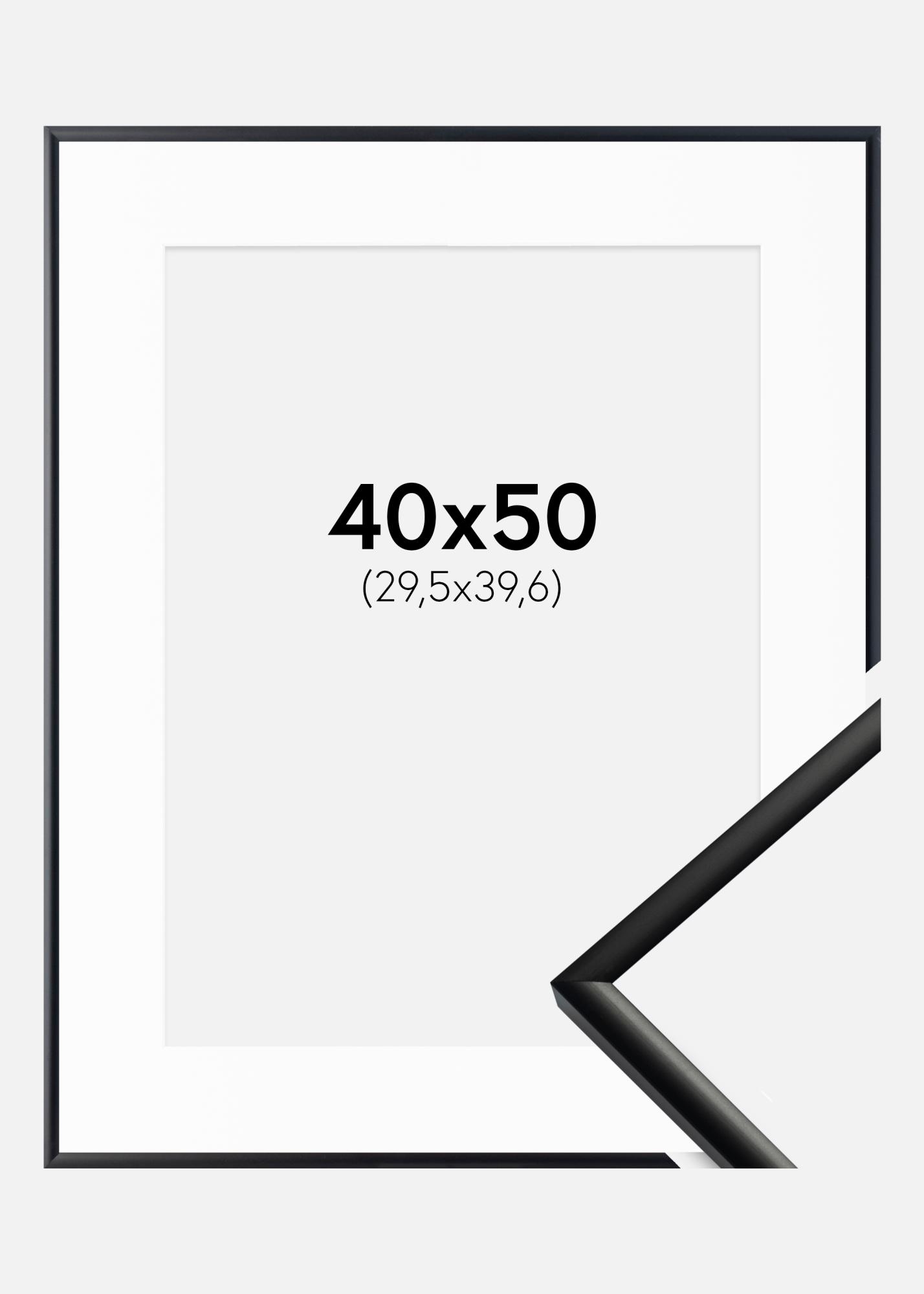 Okvir ima ozko obliko s širino le 9,8 mm in globino 16,5 mm, kar mu daje eleganten in moderen videz. Mat črni zaključek dopolnjuje belo passepartout, ki je priložena, kar ustvarja čudovit kontrast in usmerja pogled na sliko v sredini.