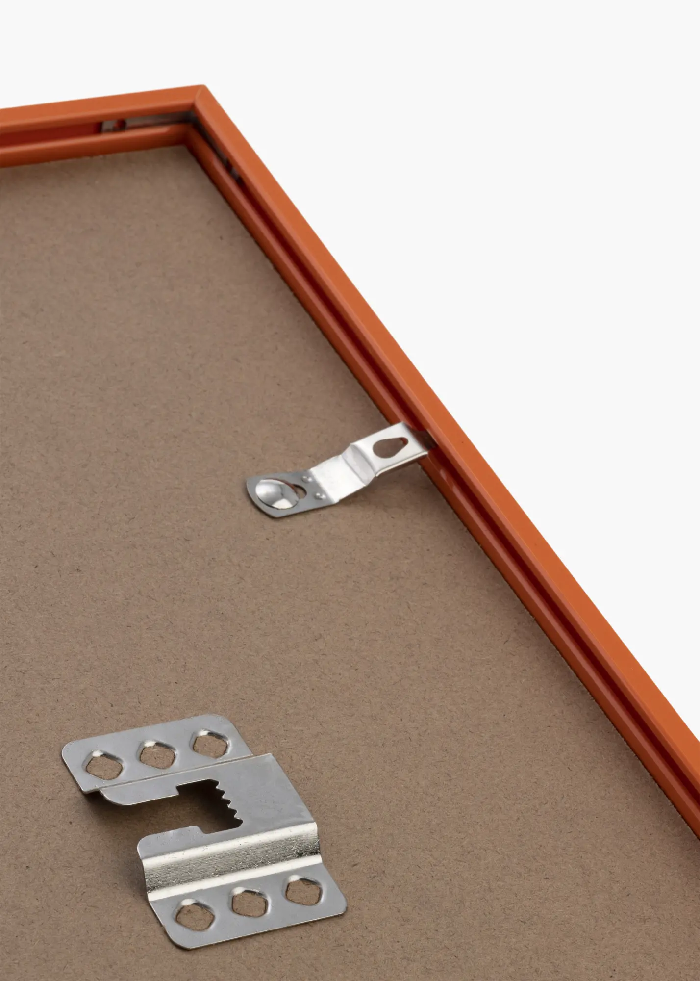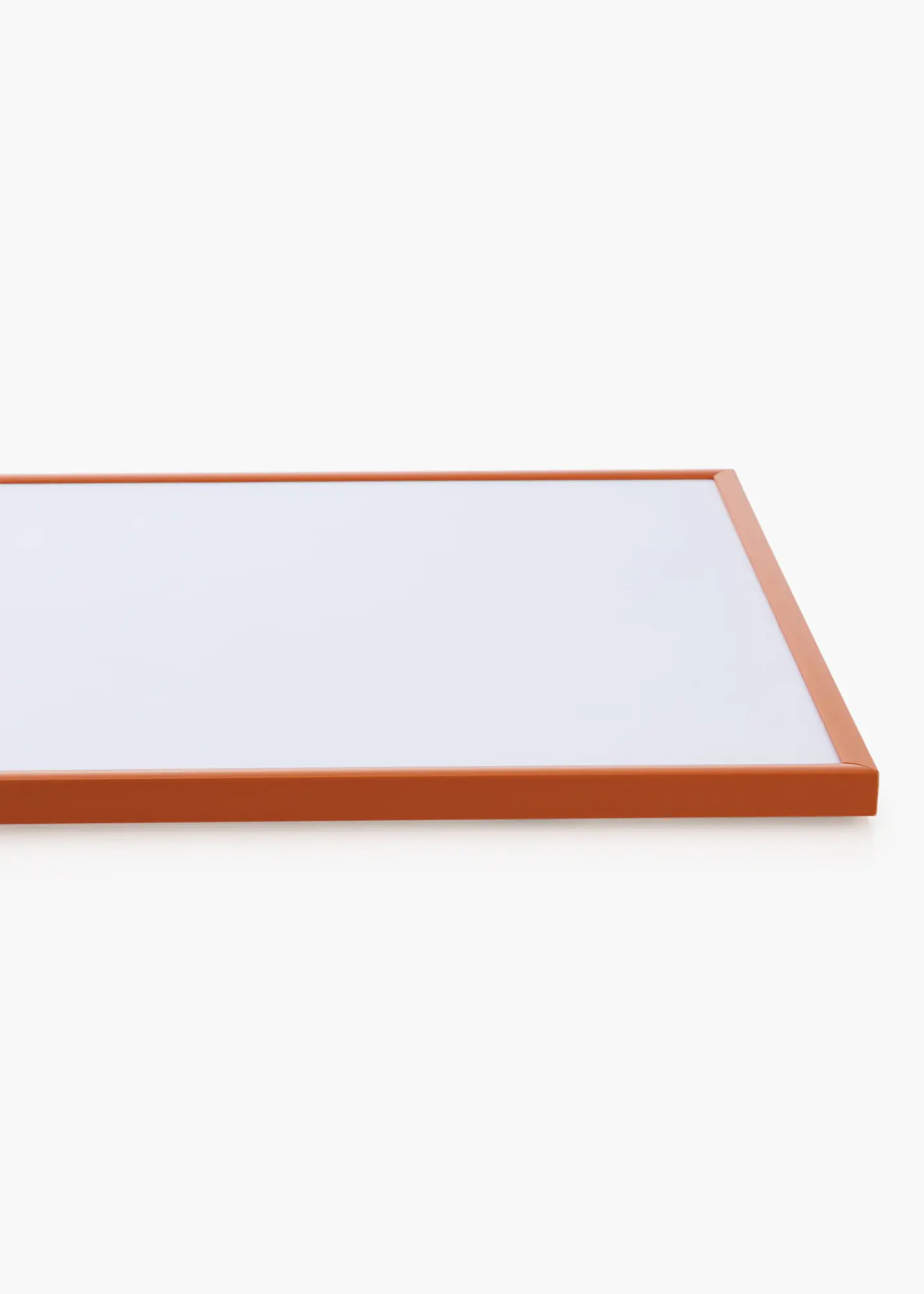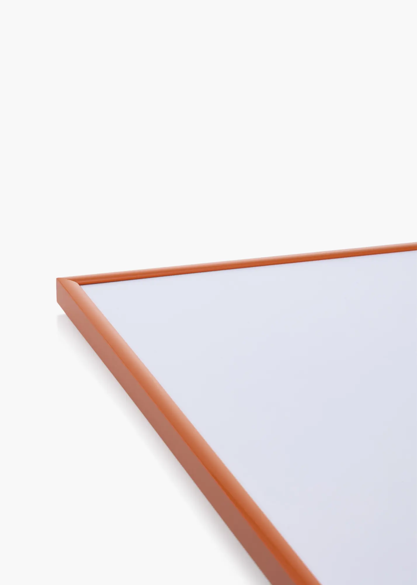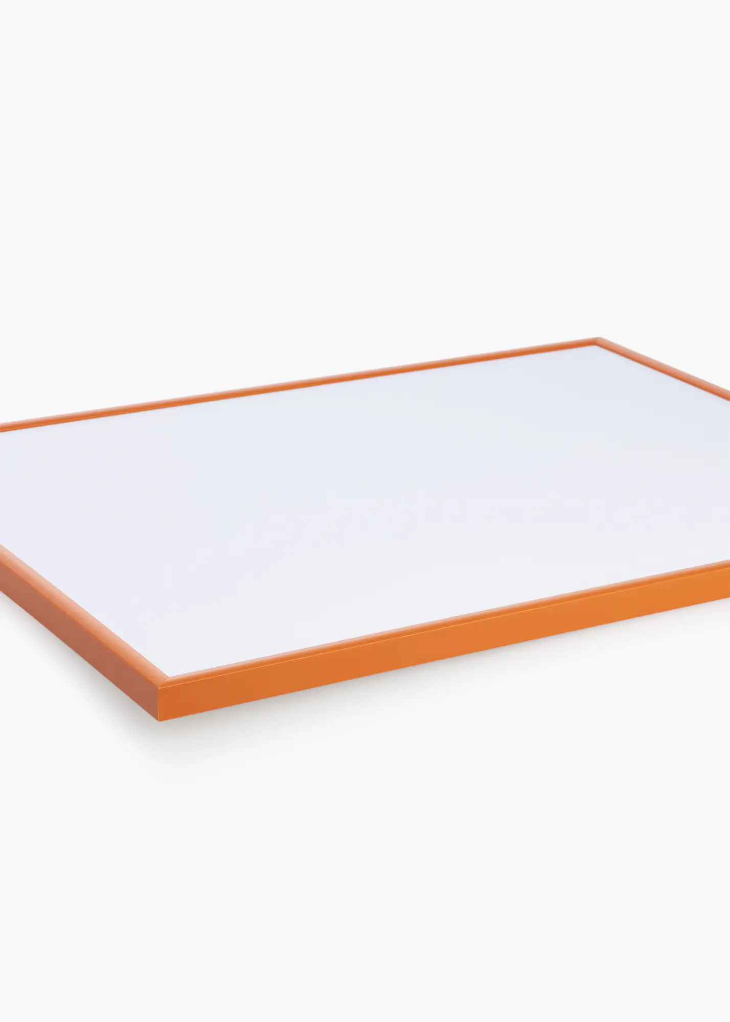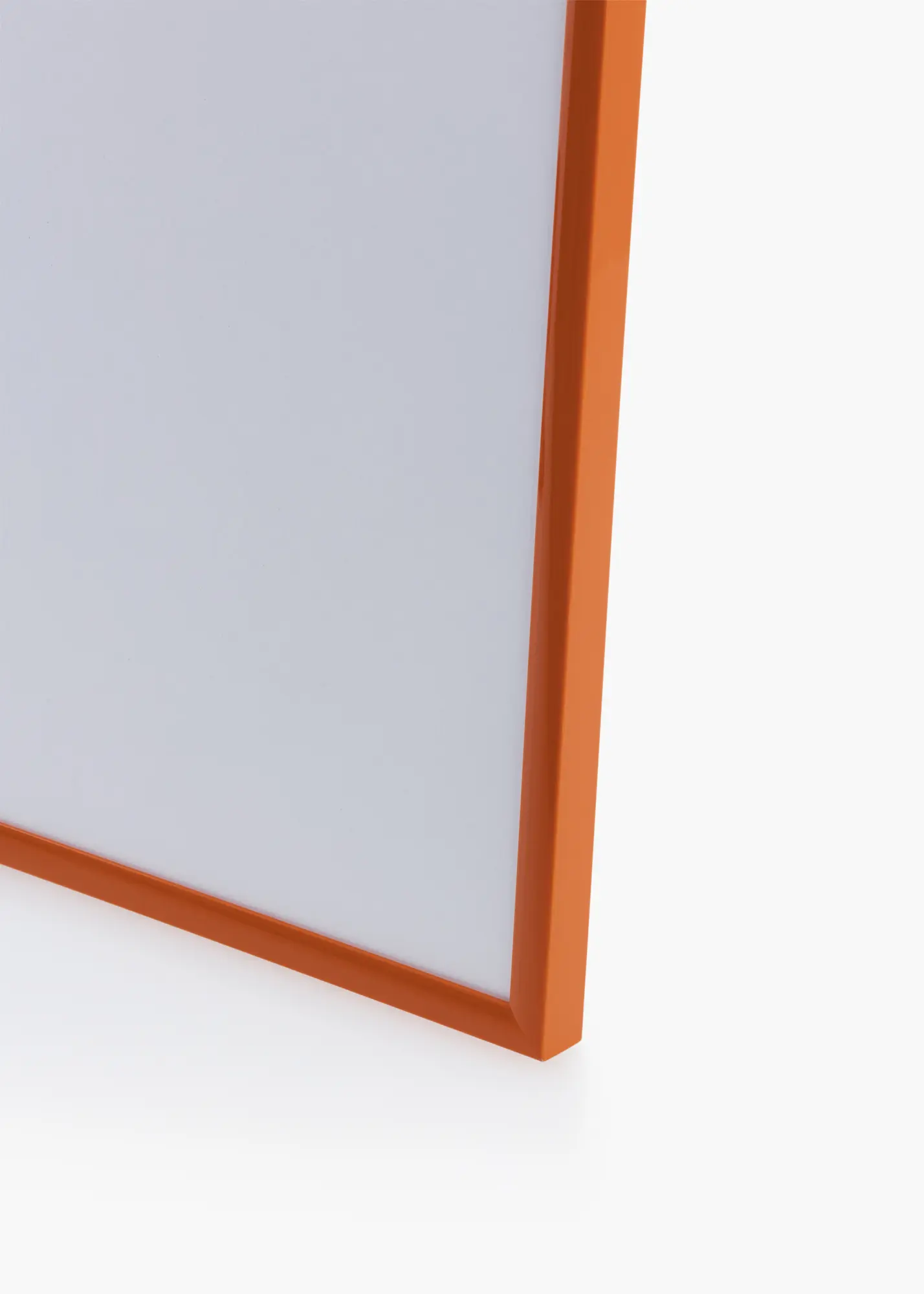 Okvir ima sijajno površino, ki vašemu domu prinaša svež in moden občutek. Njegova ozka širina 9,8 mm zagotavlja, da je vsa pozornost usmerjena na sliko, medtem ko globina 16,5 mm daje poseben profil in globino. Beli passepartout dopolnjuje oranžni okvir in ustvarja kontrast, zaradi katerega vaše slike resnično izstopajo.