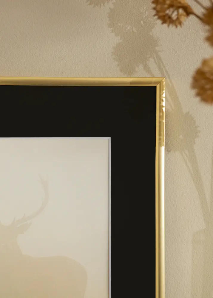 Doživite eleganco z zlatim okvirjem, ki poudari vašo sliko v velikosti 50x65 cm. Ta subtilna širina okvirja 9,8 mm dopolnjuje motiv, ne da bi ga prevladala.