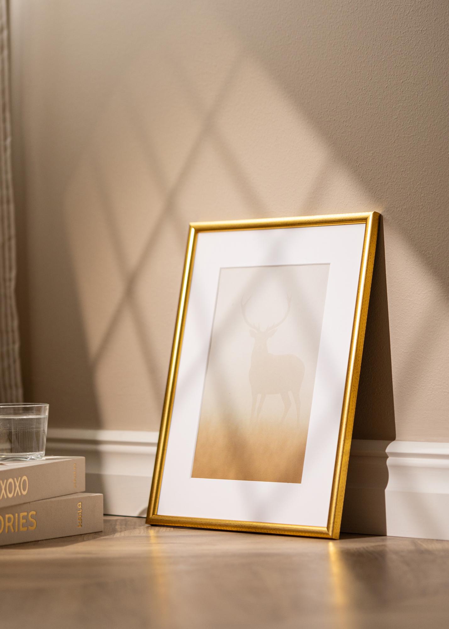 Začni izbiralec okvirja »Newline Zlata ima tanek okvirni profil (15 mm), ki omogoča fokus na motivu v okvirju. Okvir ima rdeče pikasto zlati profil, ki daje starinski videz.
