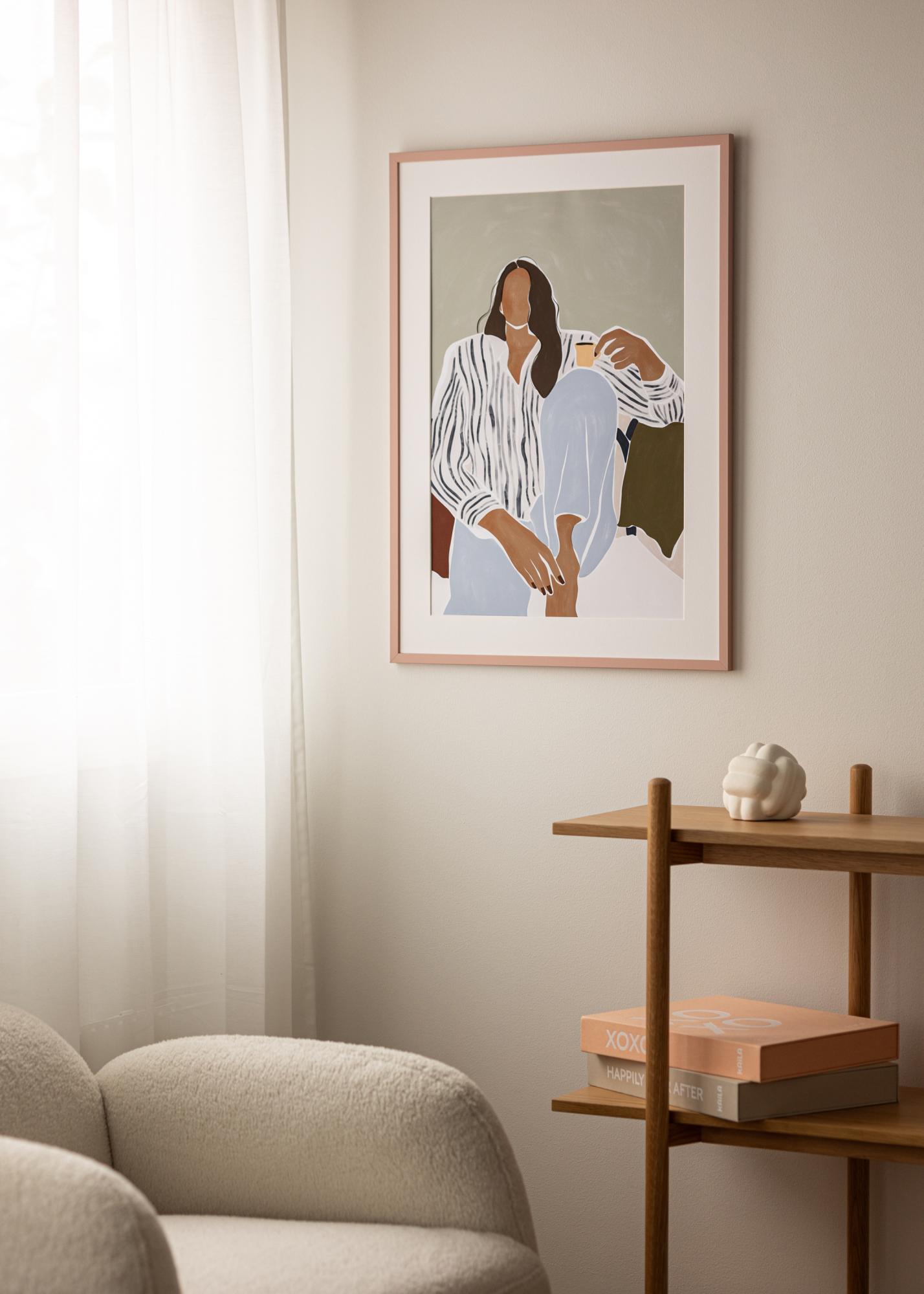 V okvirju je pravo steklo, hrbtna stran okvirja pa je izdelana iz močnega rjavega MDF. Okvir je prav tako opremljen s premikajočim stenskim nosilcem, ki vam omogoča, da izberete navpično ali vodoravno postavitev na vaši steni. Da namestite vašo sliko, preprosto upognite kovinske sponke, ki držijo hrbtno stran na mestu, in namestite sliko znotraj okvirja.