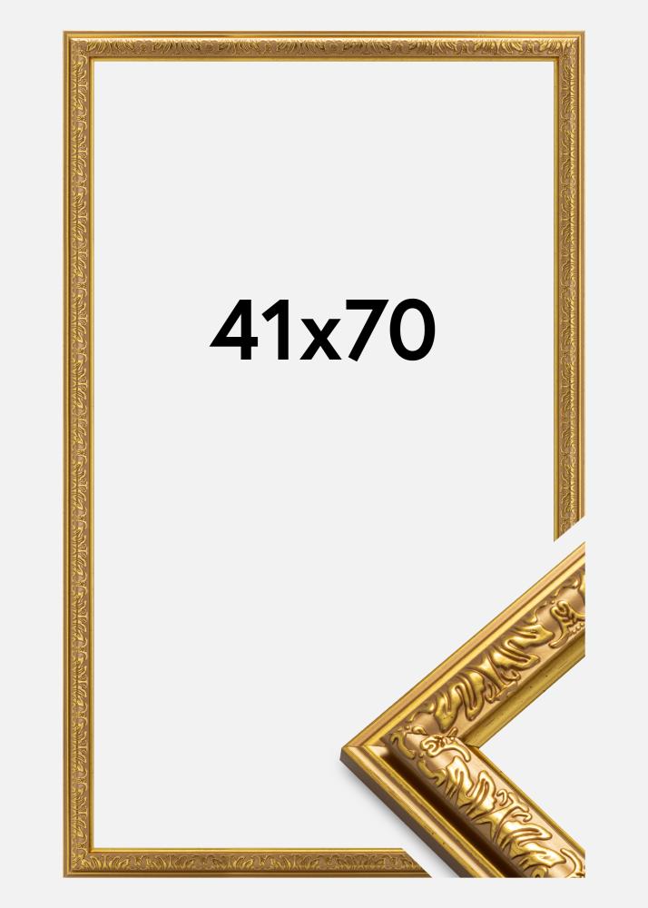 Dodajte svojim stenam pridih elegance in zgodovinskega šarma s tem zlatim okvirjem v slogu rokoko velikosti 41x70 cm. Vzorčast profil okvirne letve dodaja vaši notranji opremi izpopolnjen videz, popoln za poudarjanje vaših najljubših umetnin ali družinskih fotografij.