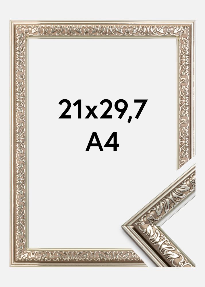 Začni izbiralec okvirja »Nostalgia je eleganten srebrni okvir v retro slogu z lepimi okrasi. Odlično se prilega, ko iščete širok retro okvir za svoje najlepše slike.