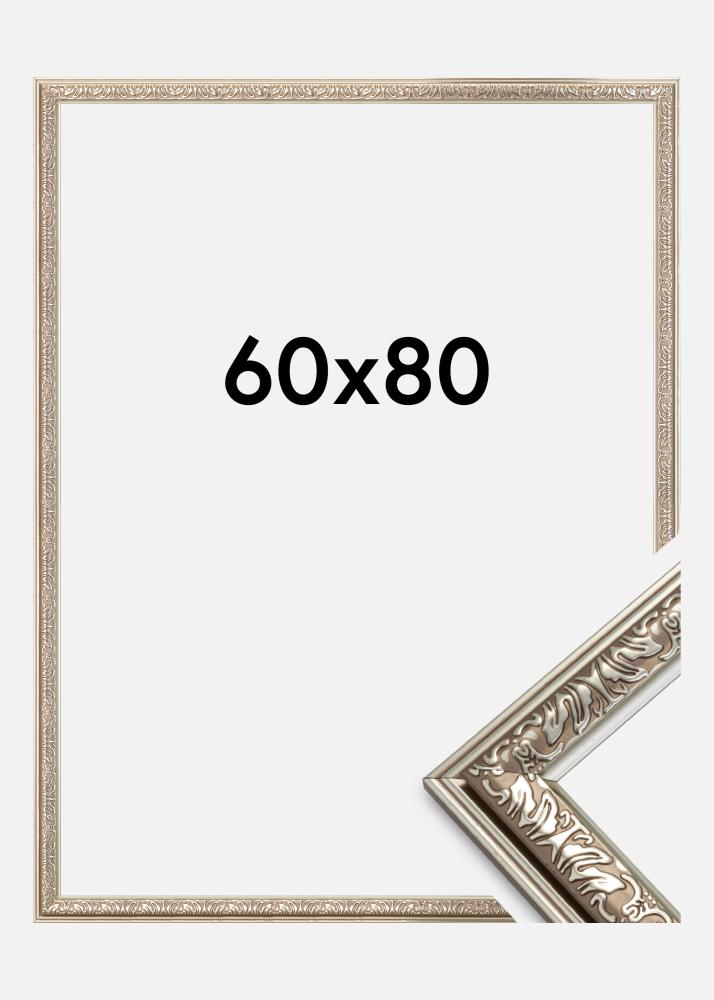 Začni izbiralec okvirja »Nostalgia je eleganten srebrn okvir v retro stilu s prekrasnimi okraski. Primeren je, ko iščete širok retro okvir za vaše najlepše slike.