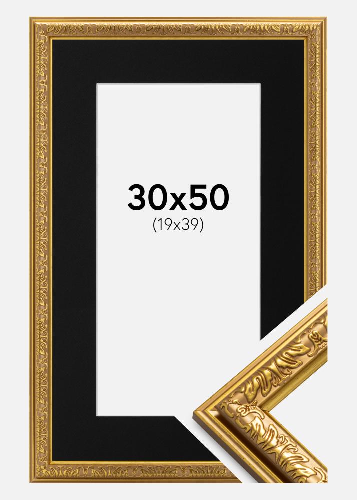 Okvir Nostalgia Zlata 30x50 cm - Paspartŭ Črna 20x40 cm