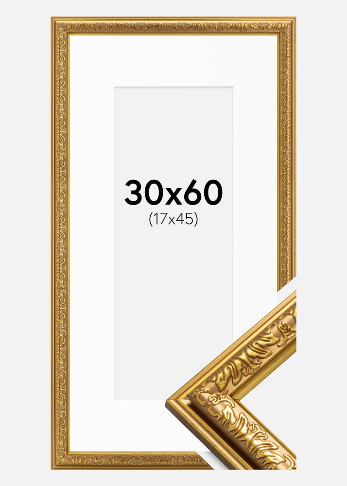 Okvir Nostalgia Zlata 30x60 cm - Paspartŭ Bela 18x46 cm