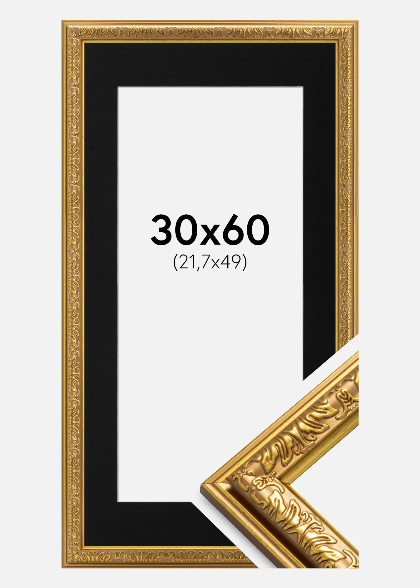 Okvir Nostalgia Zlata 30x60 cm - Paspartŭ Črna 22,7x50 cm
