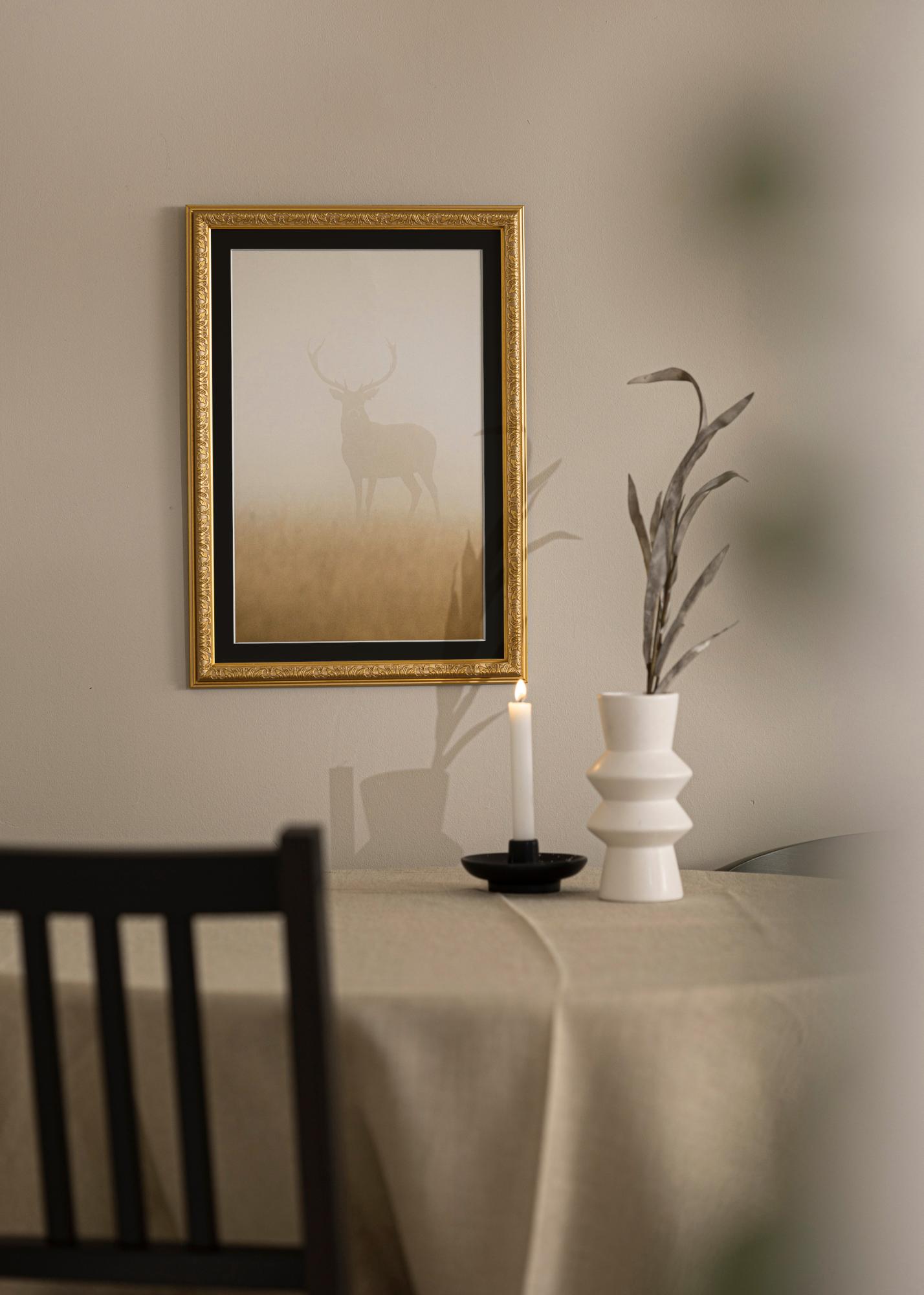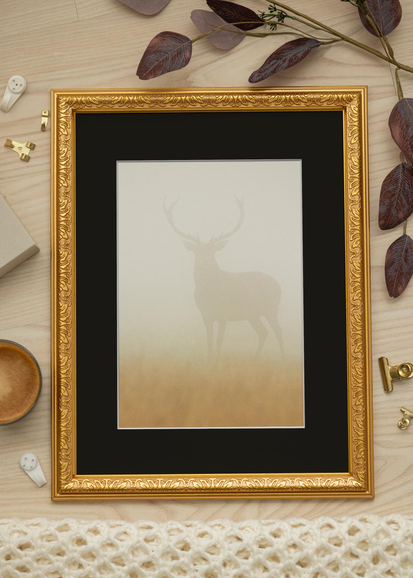 Podarite svojim najljubšim slikam pozornost, ki si jo zaslužijo, z elegantnim zlatim okvirjem, popolnim s črno paspartuju. Ta prefinjena kombinacija poudarja kontrast in globino vaših fotografij ali umetniškega dela, medtem ko črna paspartuja ustvarja vizualni premor, ki usmerja pogled opazovalca k sliki. Sijoč zlat odtenek okvirja doda razkošen pridih vaši notranjosti in se prilega tako klasičnim kot modernim okoljem.