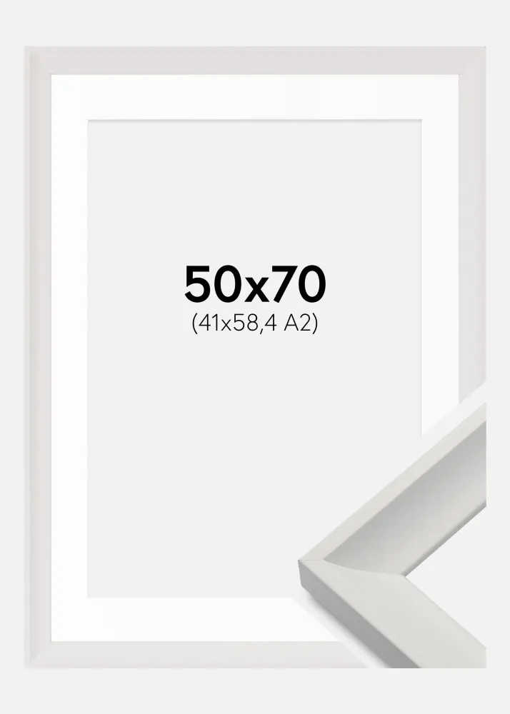 Doživite popolno uokvirjanje svojih umetniških del ali najljubših fotografij z našim elegantnim belim okvirjem, dopolnjenim z belo passepartout. Ta kombinacija poudari vašo sliko v velikosti 42x59,4 cm (A2) in ji daje profesionalen in prefinjen videz. Širina okvirja 34 mm in globina 25 mm ustvarjata izrazit rob, ki privlači pogled proti sliki.