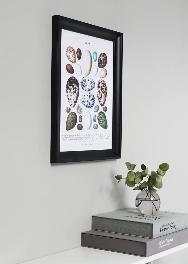 Ustvarite elegantno steno s slikami s tem stilskim črnim okvirjem, ki lepo okvirja vašo sliko v velikosti 35x50 cm. Mat površina okvirja daje vašemu umetniškemu delu ali fotografiji prefinjen pridih.