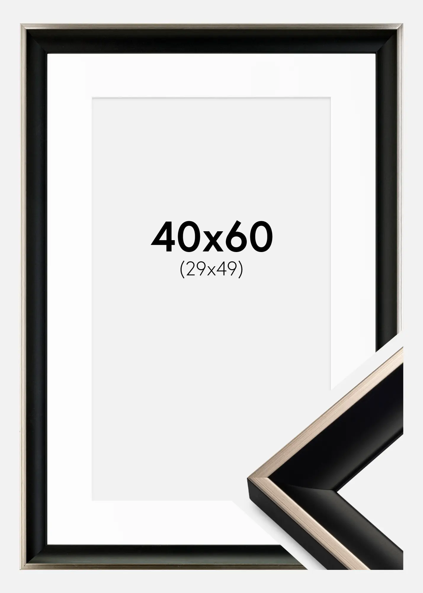 Okvir Öjaren Črno-Srebrna 40x60 cm - Paspartŭ Bela 30x50 cm