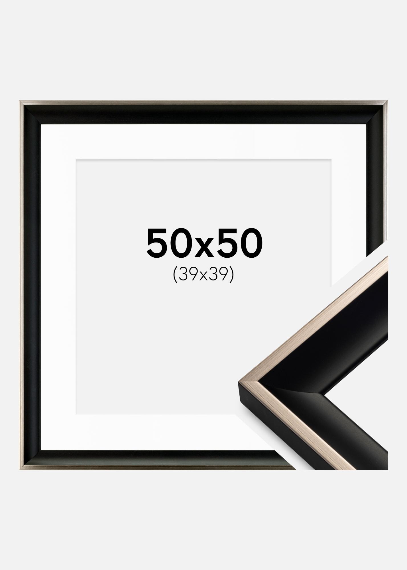 Okvir Öjaren Črno-Srebrna 50x50 cm - Paspartŭ Bela 40x40 cm