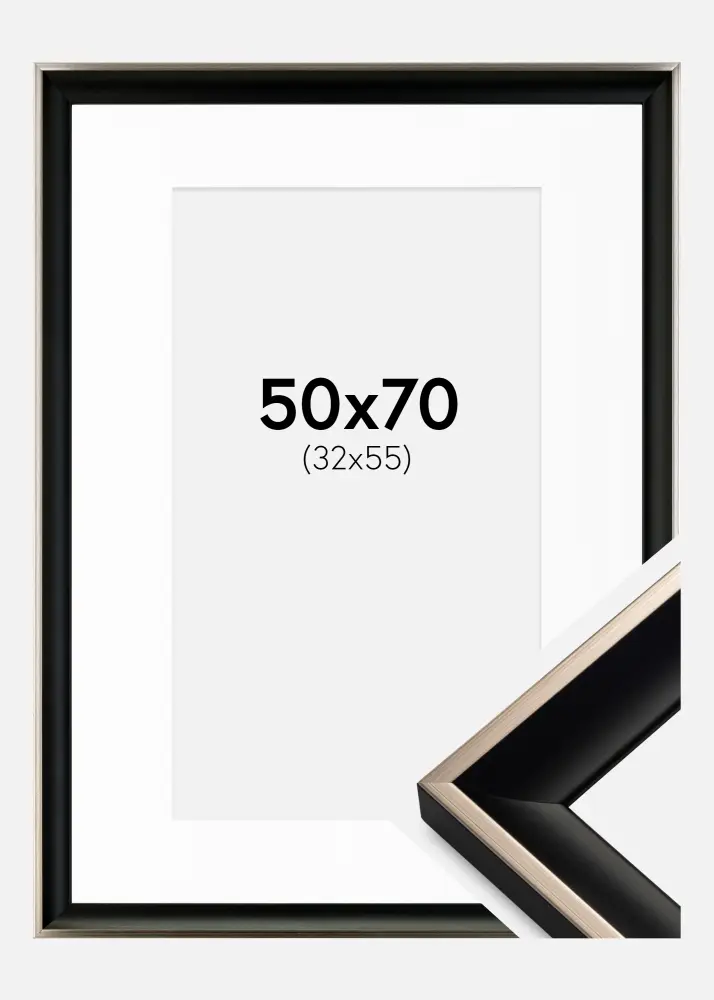 Okvir Öjaren Črno-Srebrna 50x70 cm - Paspartŭ Bela 33x56 cm