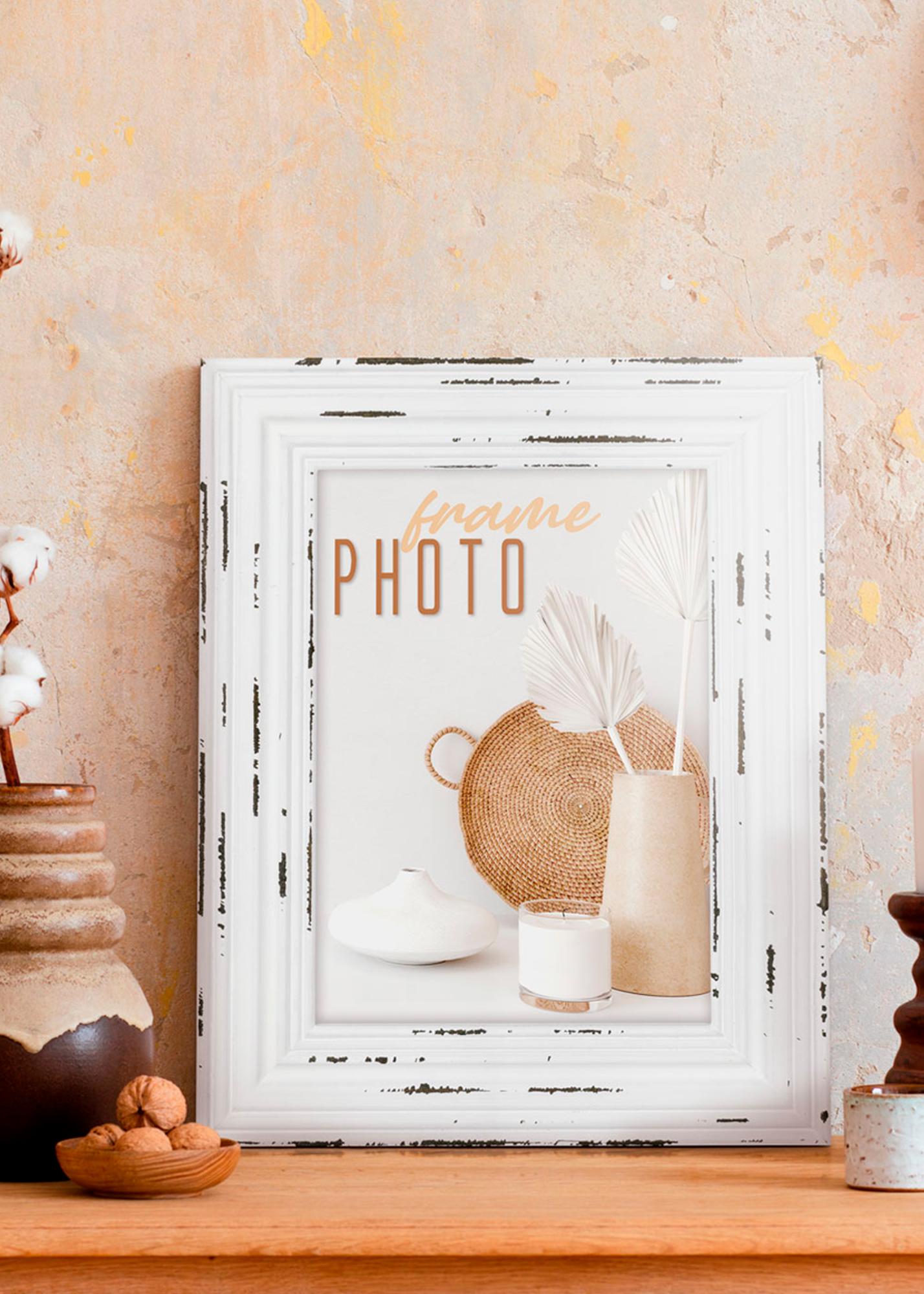 Daj svojim najljubšim fotografijam edinstveno obrobo s to očarljivo fotookvirjem v vintage slogu. Z obrabljenimi belimi površinami in temnimi poudarki okvir nudi občutek antične elegance vašemu domu. Velikost 13x18 cm je popolna za poudarek tako portretov kot pokrajinskih slik.