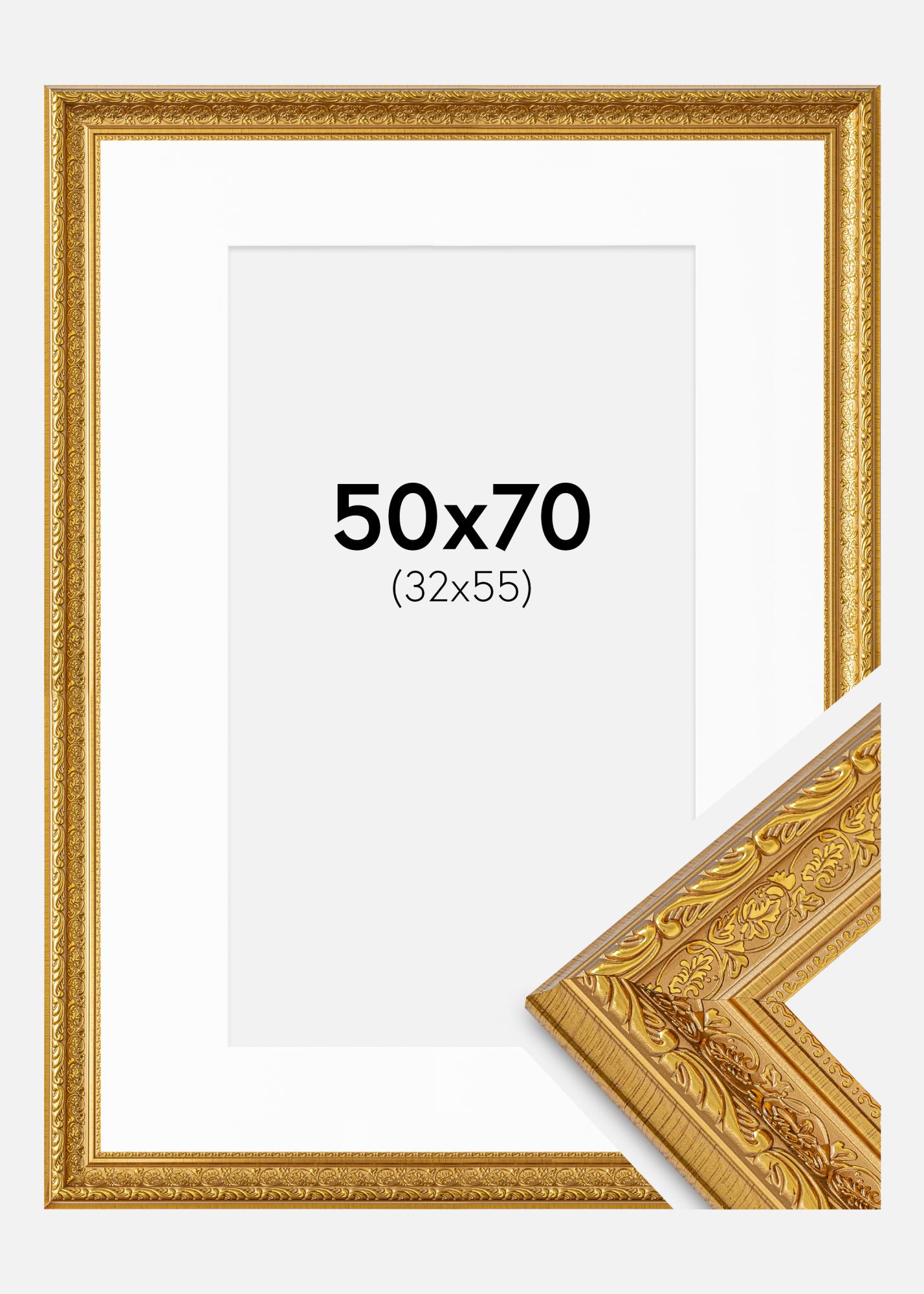 Okvir Ornate zlato 50x70 cm - Paspartȗ Bela 33x56 cm