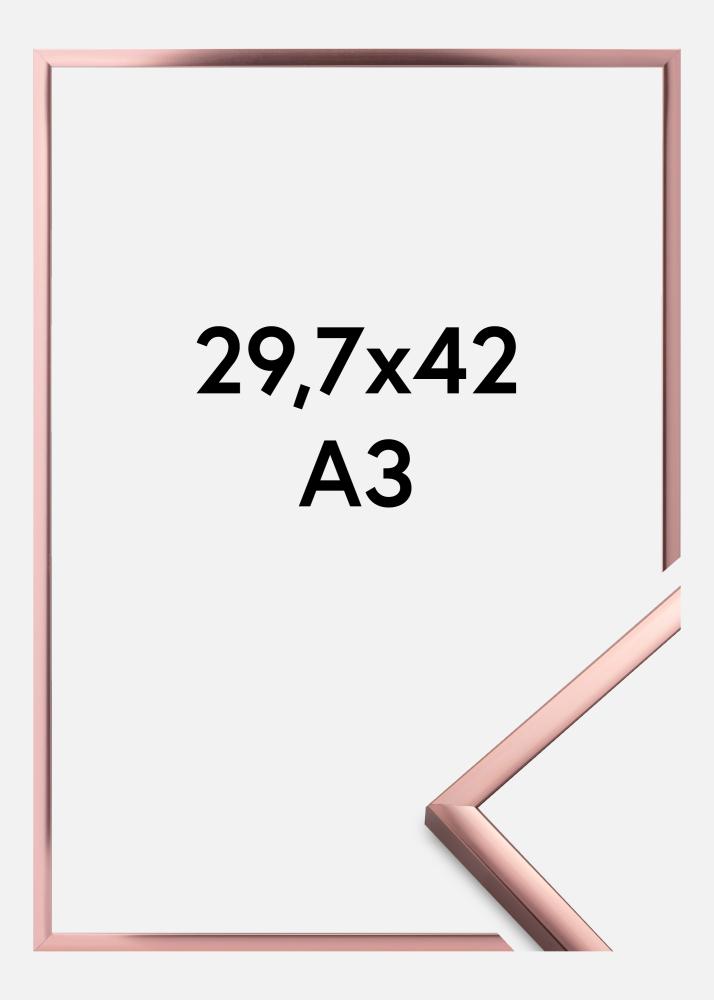 Dajte svojim plakatom in umetniškim delom pridih elegance z našim elegantnim okvirjem iz rožnatega zlata. Z velikostjo okvirja 29,7x42 cm je idealen za format A3 in postane prefinjen detalj v vsakem prostoru.