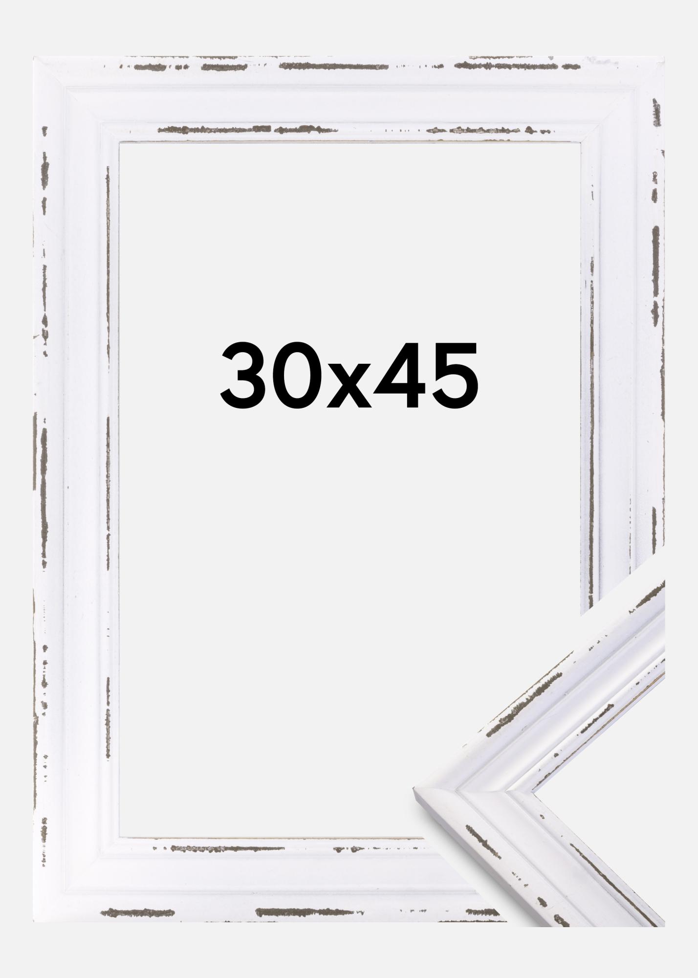 Če nimate sreče, da bi podedovali stare uokvirjene družinske fotografije, si lahko te slike ustvarite sami. Tukaj je dekorativno obrabljen okvir, ki je popoln za ta namen! Okvir je bel s klasično profilirano letvijo in obrabljenimi deli, kjer les sije skoznje. Izberite med različnimi velikostmi!