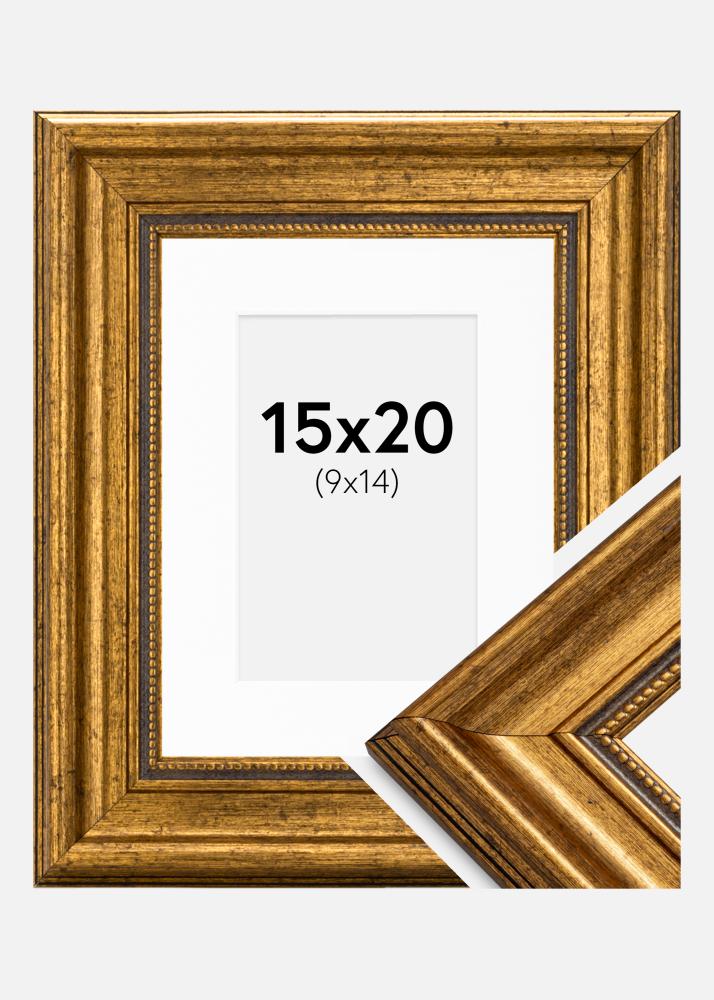 Doživite eleganco z zlato obrobo, ki poudarja vašo sliko v velikosti 10x15 cm. Ta okvir ima impresivno širino 26 mm in globino 50 mm, kar daje vašemu umetniškemu delu ali fotografiji izjemen in razkošen občutek.