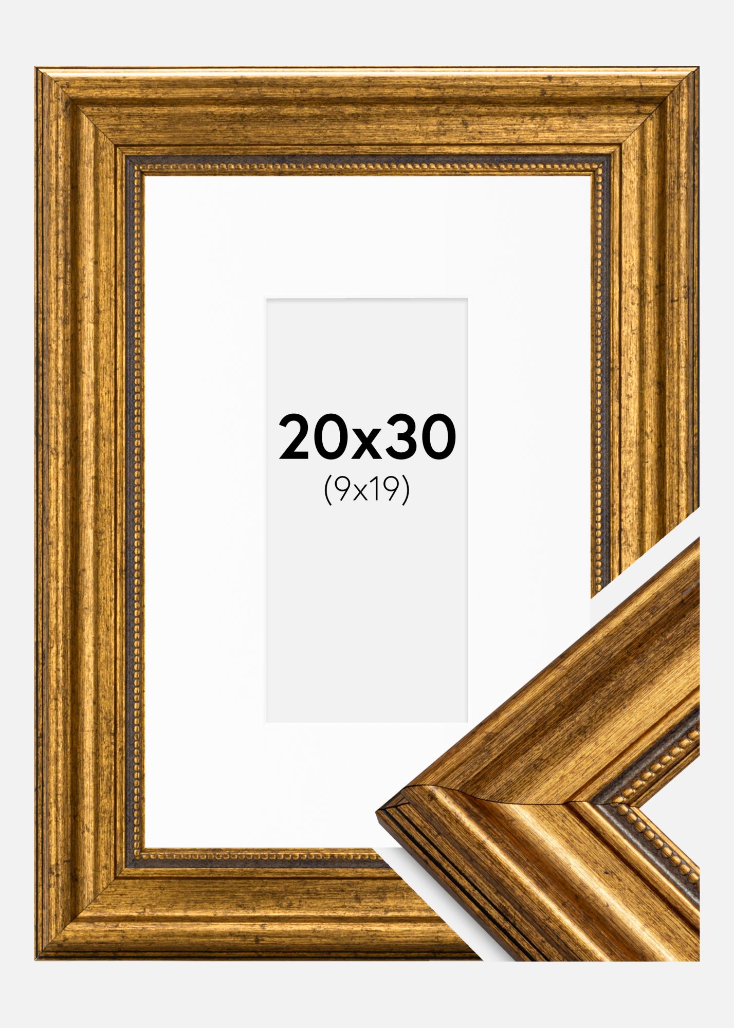 Dajte svojim najljubšim slikam pozornost, ki si jo zaslužijo, z elegantnim zlatim okvirjem, popolnoma opremljenim z belo passepartout. Ta sofisticirana kombinacija poudari vašo sliko v velikosti 10x20 cm, medtem ko bela passepartout ustvarja vizualni prostor, ki okrepi kontrast in usmeri oko opazovalca na motiv.