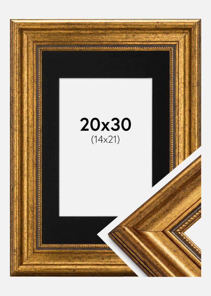 Okvir Rokoko Zlata 20x30 cm - Paspartŭ Črna 15x22 cm