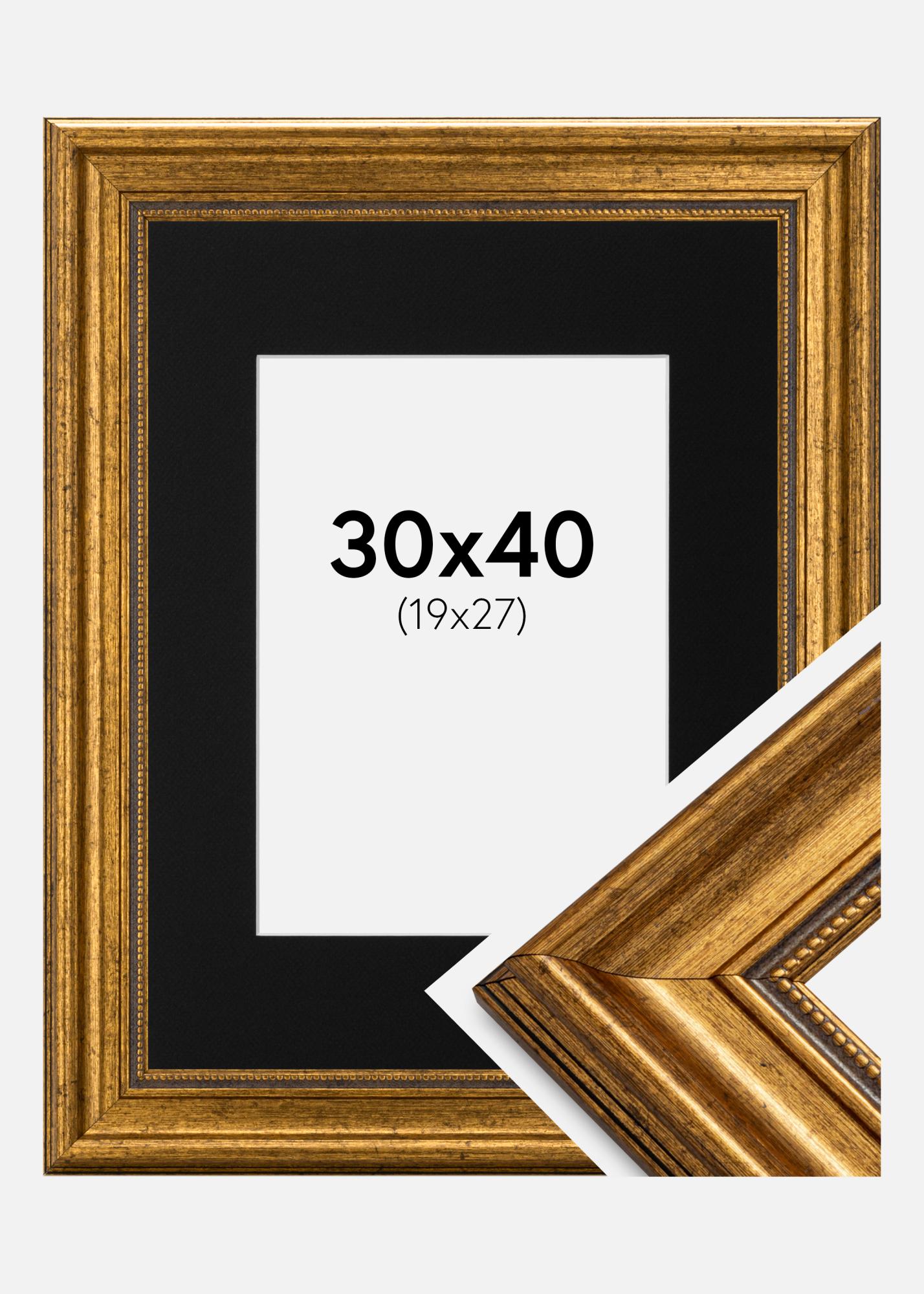 Okvir Rokoko Zlata 30x40 cm - Paspartŭ Črna 20x28 cm