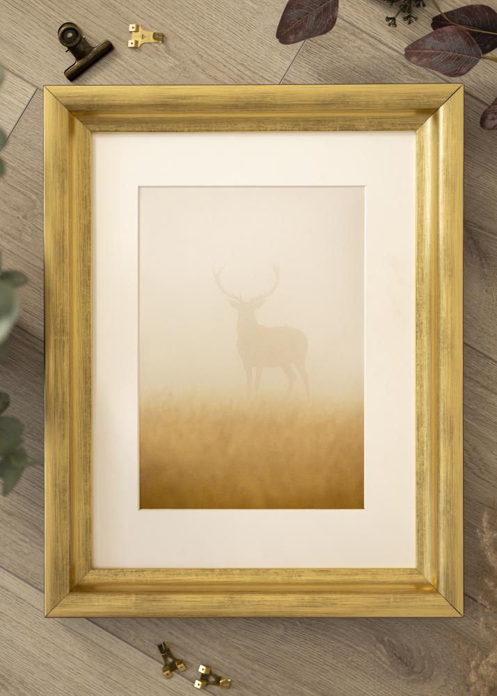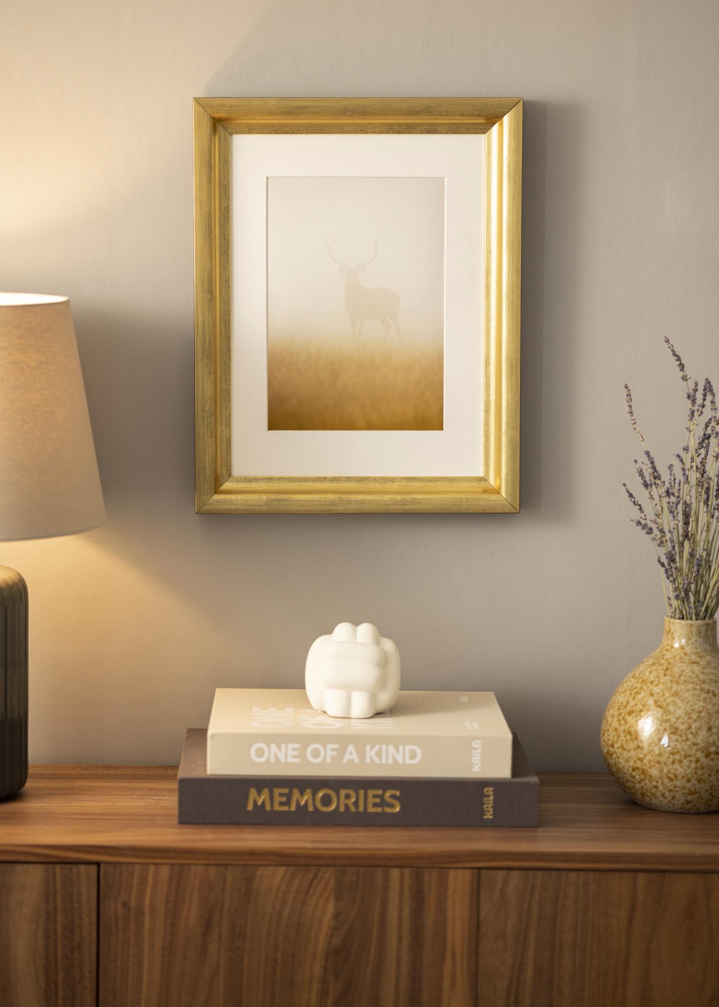 Klasičen okvir za slike, kjer sami izberete, kako velik okvir želite. S svojim širokim in globokim profilom je to zagotovo okvir, ki ga opazimo. Okvir ima mehko prijetno zlato barvo, ki motivu doda prijeten in lep občutek.