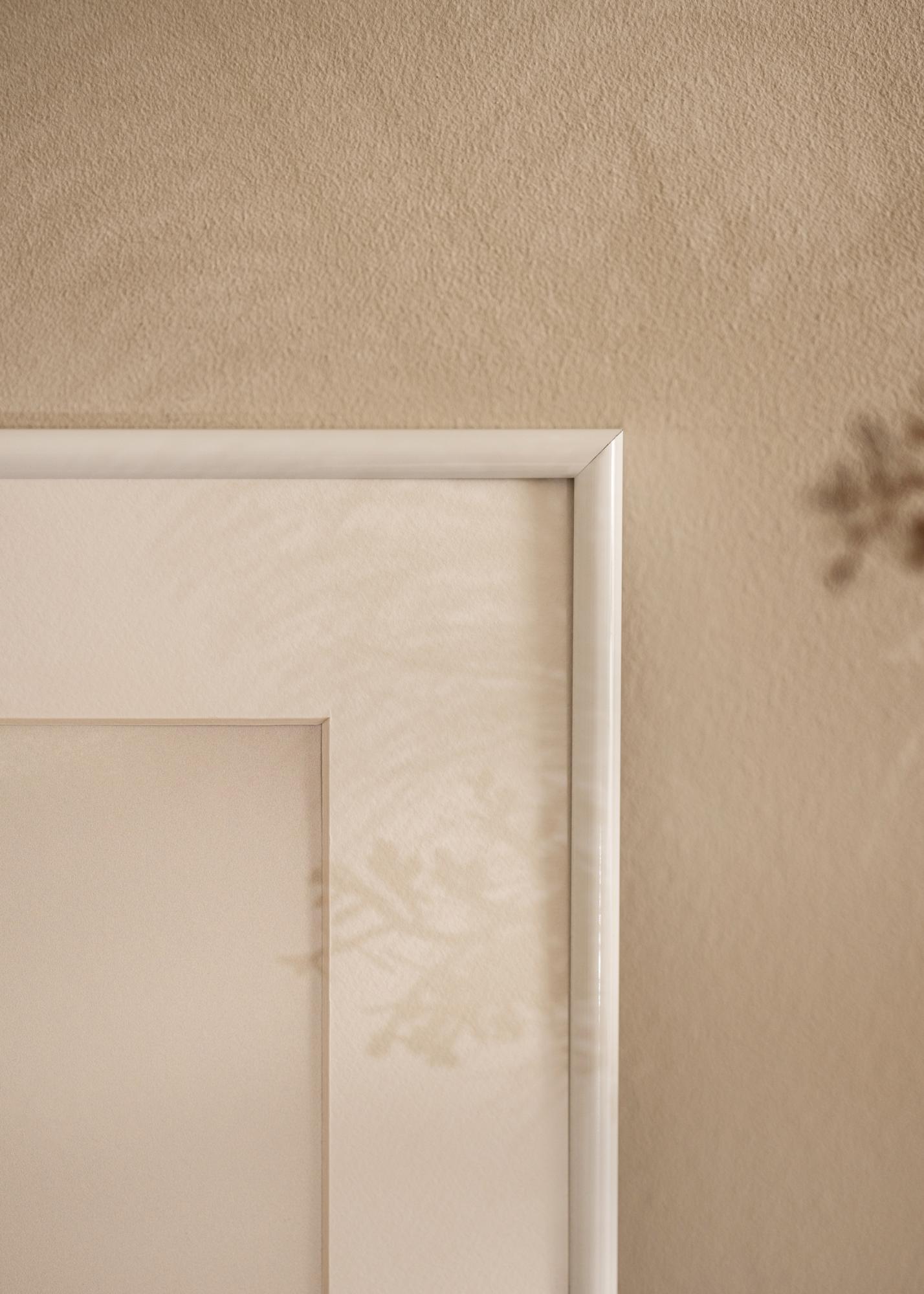 Moderna visoko sijajna fotookvir v beli barvi z globokim profilom 26 mm. To omogoča, da motiv izstopa s stene in ustvarja čudovit 3D učinek. Odlično, kadar iščete preprost fotookvir, ki vašim slikam daje eleganten okvir.