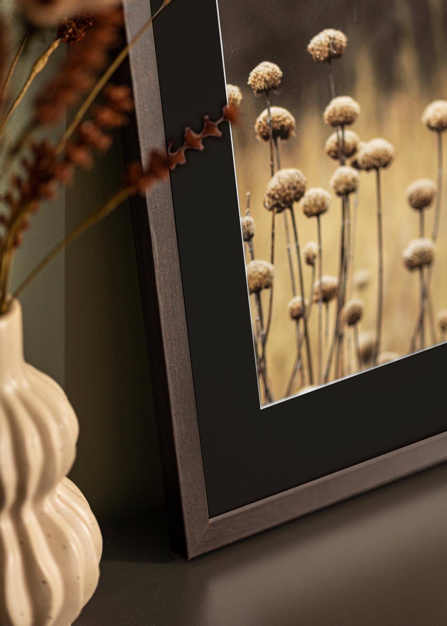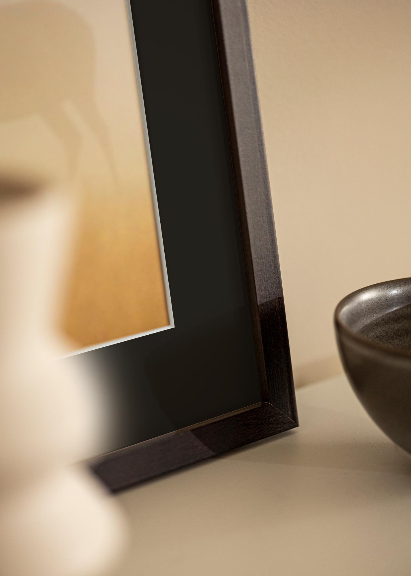 Okvir, s svojo toplo leseno barvo in mat zaključkom, ponuja brezčasno obliko, ki dopolnjuje tako moderne kot tradicionalne stile notranje opreme. S širino in globino 18 mm okvir ustvarja robustno uokvirjanje, ki usmerja oko proti središču slike. Paspartu ne deluje le estetsko, ampak tudi ščiti vašo fotografijo pred direkten stikom s steklom, kar prispeva k ohranjanju kakovosti slike skozi čas.