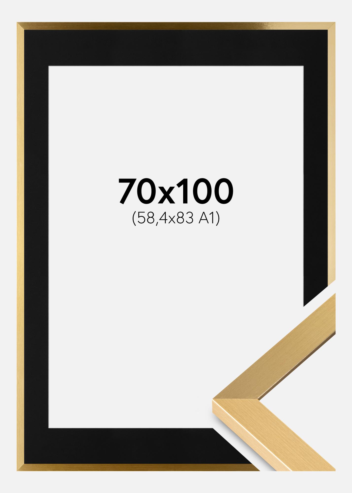 Pretvorite svoje umetniško delo ali fotografijo v eleganten pogled z našim zlatim okvirjem s črno passepartout. Ta okvir ni le stilska uokviritev, temveč tudi praktična in zaščitna za vaše umetniško delo. Z zunanjimi merami 73,5x103,5 cm in velikostjo slike 59,4x84 cm (A1), ta okvir ponuja velikodušno površino za poudarjanje izbranega motiva.
