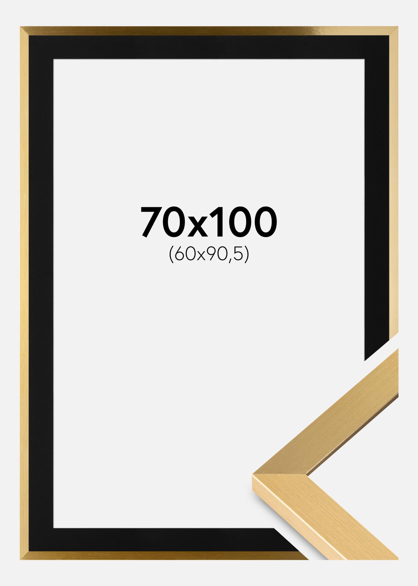 Izboljšajte svojo umetnost in ji dajte pozornost, ki si jo zasluži, z našim elegantnim zlatim okvirjem s črnim passepartoutom. Ta okvir je popoln za izpostavljanje vaše slike v velikosti 61x91,5 cm, medtem ko so zunanje mere okvirja 73,5x103,5 cm. Črni passepartout ustvari vizualni premor, ki usmeri pozornost na umetniško delo in doda globino, zaradi katere slika resnično izstopa.