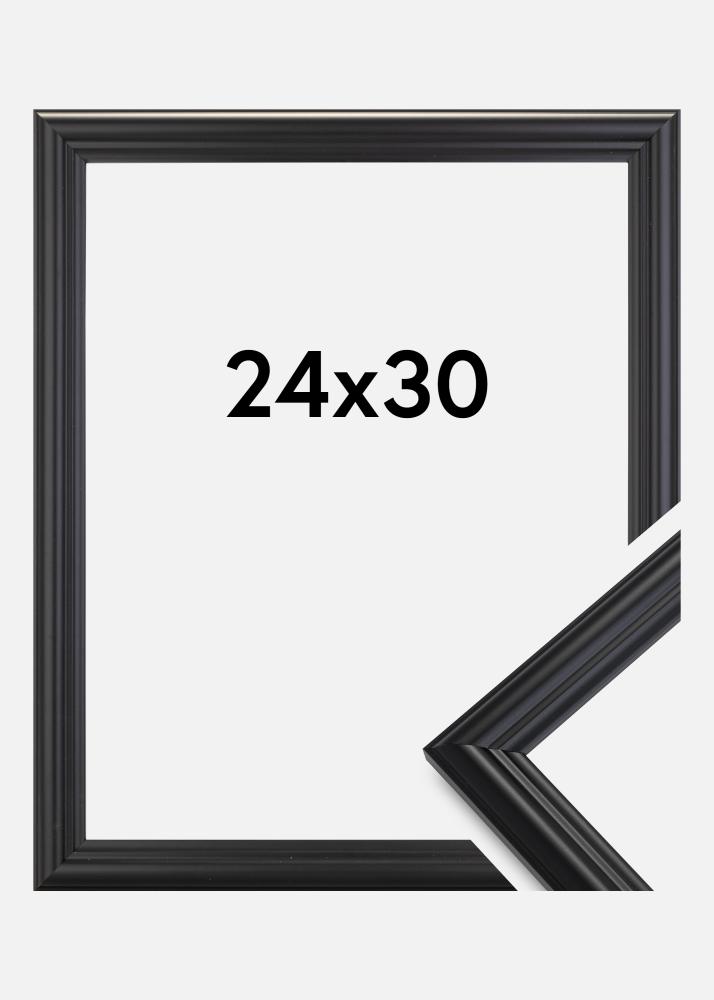 Siljan Okvir Črn 8C ima klasično profiliran lesen seznam, pobarvan z mat, črno barvo.
