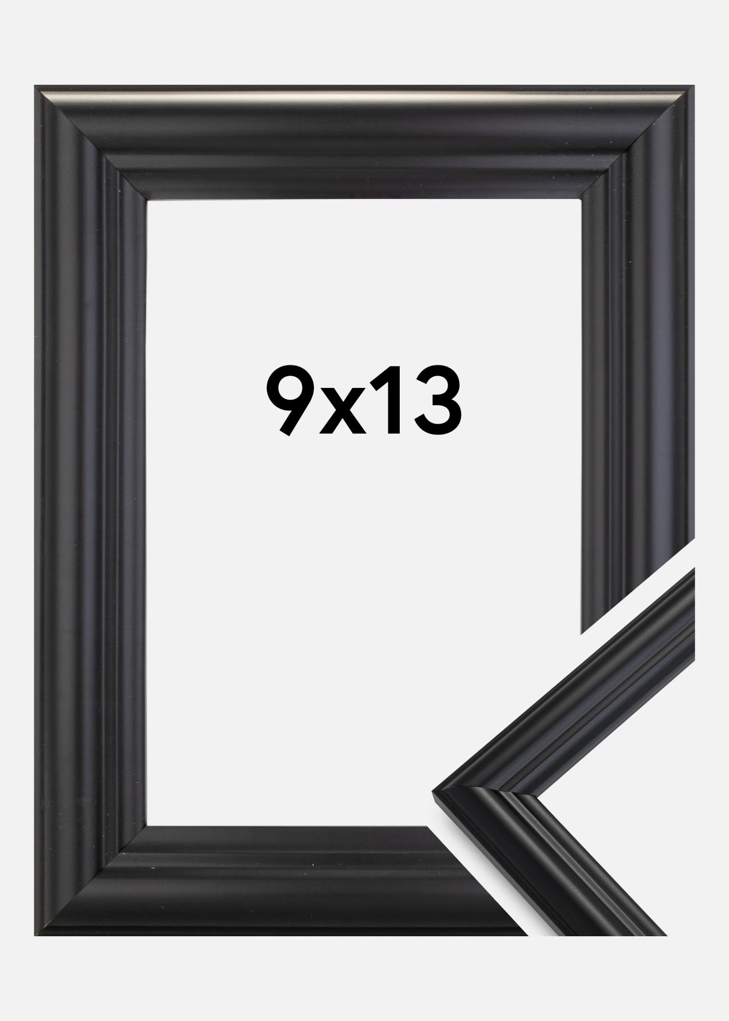 Siljan Okvir Črna 8C ima klasično profiliran lesen okvir, ki je barvan z mat, črno barvo.