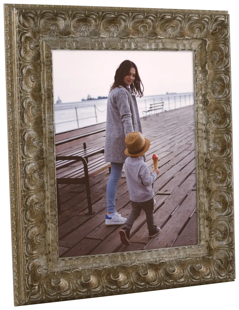 Okvir Skokloster Srebrn je eleganten in brezčasen foto okvir, ki je izdelan v naši lastni delavnici za izdelavo okvirjev. S svojo antikno srebrno površino in klasično okrašeno profilno, ponuja ta okvir za slike rustikalni in sofisticiran občutek, ki se popolnoma prilega tradicionalnim stilom notranje opreme. Detajlna ornamentacija in patinirana površina dajeta okvirju edinstven značaj, ki poudari katero koli sobo.