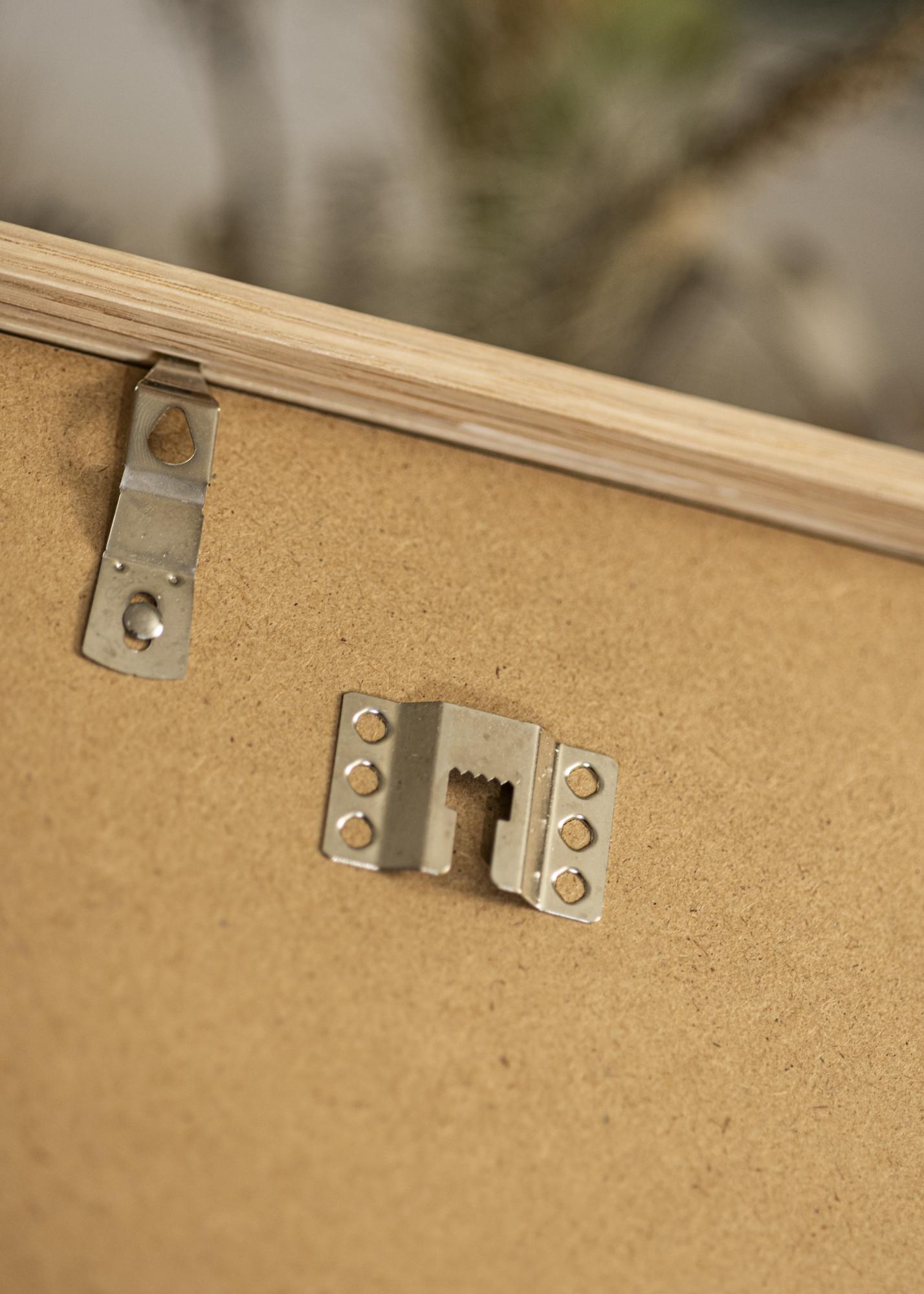 Zaradi svoje vsestranskosti se lahko okvir obeša tako horizontalno kot vertikalno zahvaljujoč vnaprej nameščenim kovinskim obešalom na zadnji strani. Poleg tega je okvir opremljen s kristalno čistim in nekenanim akrilnim steklom, ki ščiti vaše umetniško delo. Ne pozabite odstraniti zaščitne folije na obeh straneh akrilnega stekla pred uporabo, da dosežete optimalno jasnost. Za osebni pridih lahko okvir obarvate ali pobarvate v želeni odtenek, saj neobdelana površina zlahka sprejme barvo. Ustvarite edinstveno uokvirjanje za svoje spomine s tem vsestranskim okvirom v velikosti 70 x 100 cm.