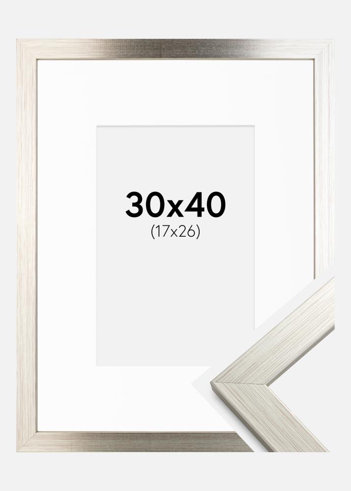 Okvir Srebrna Wood 30x40 cm - Paspartŭ Bela 18x27 cm