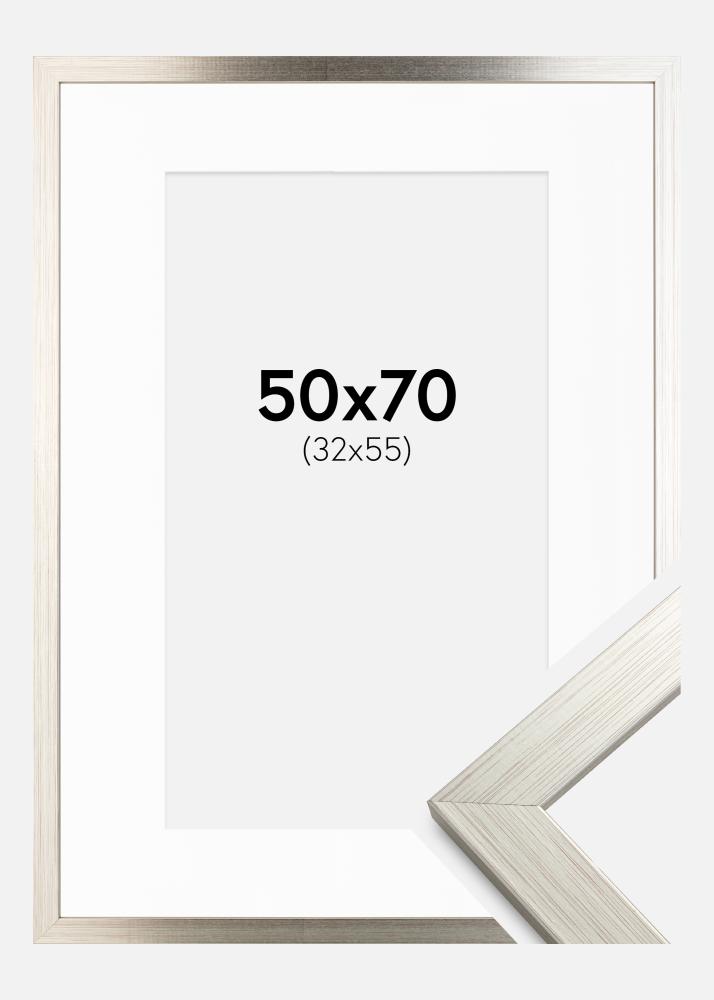 Doživite eleganco in sofisticiran občutek z našim ekskluzivnim srebrno obarvanim okvirjem, ki bo vaše fotografije ali umetniško delo spremenil v osrednjo točko v vašem domu. Bela podlaga omogoča profesionalno okvirjanje in poudari vašo sliko v velikosti 33x56 cm, hkrati pa ustvarja vizualni premor med motivom in matirano končno obdelavo okvirja.
