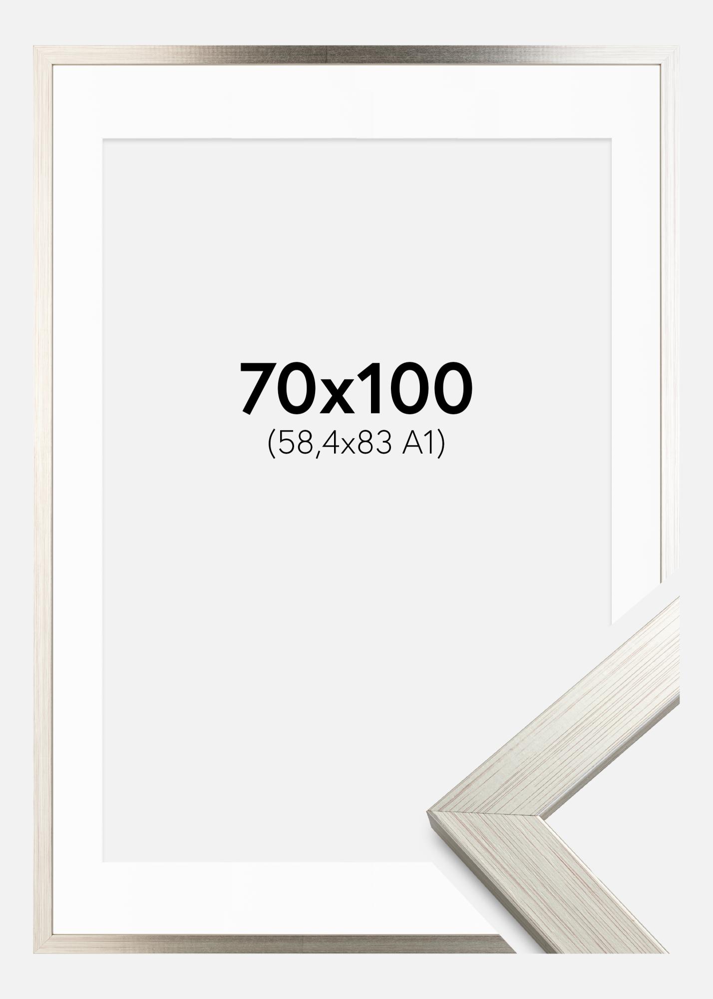 Okvir Srebrna Wood 70x100 cm - Paspartŭ Bela 59,4x84 cm (A1)