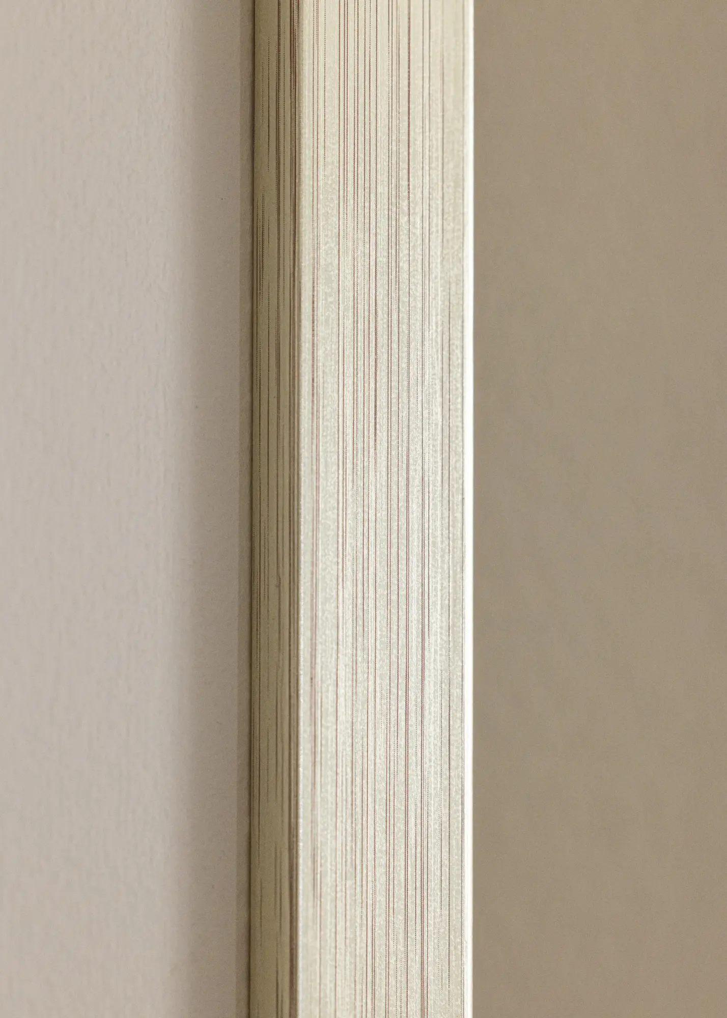 Malce širši elegantni srebrni okvir iz lesa pogosto doda tisto malo dodatnega vaši sliki, še posebej v kombinaciji s passepartoutom. Serija okvirjev Silver Wood je na voljo v skoraj 100 velikostih in je lahko naročena po meri tako kot okvir kot tudi kot ogledalo. Popolno za ustvarjanje elegantne stenske galerije. Če želite kombinirati z več barvami, je okvir na voljo tudi v črni, beli in zlati barvi.