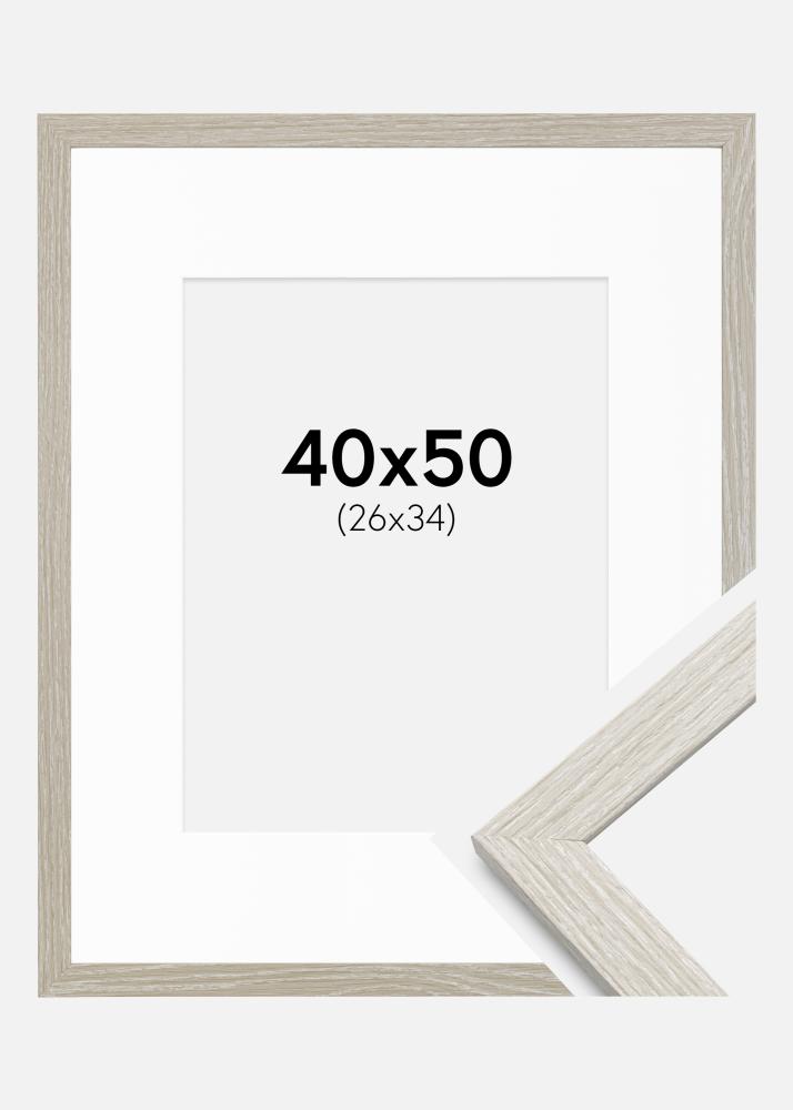 Okvir je dobavljen z belim passepartoutom, ki na okusen način uokvirja vašo sliko. Passepartout je prilagojen za slike velikosti 27x35 cm, kar ustvarja lep kontrast s sivim okvirjem in elegantno poudari motiv.