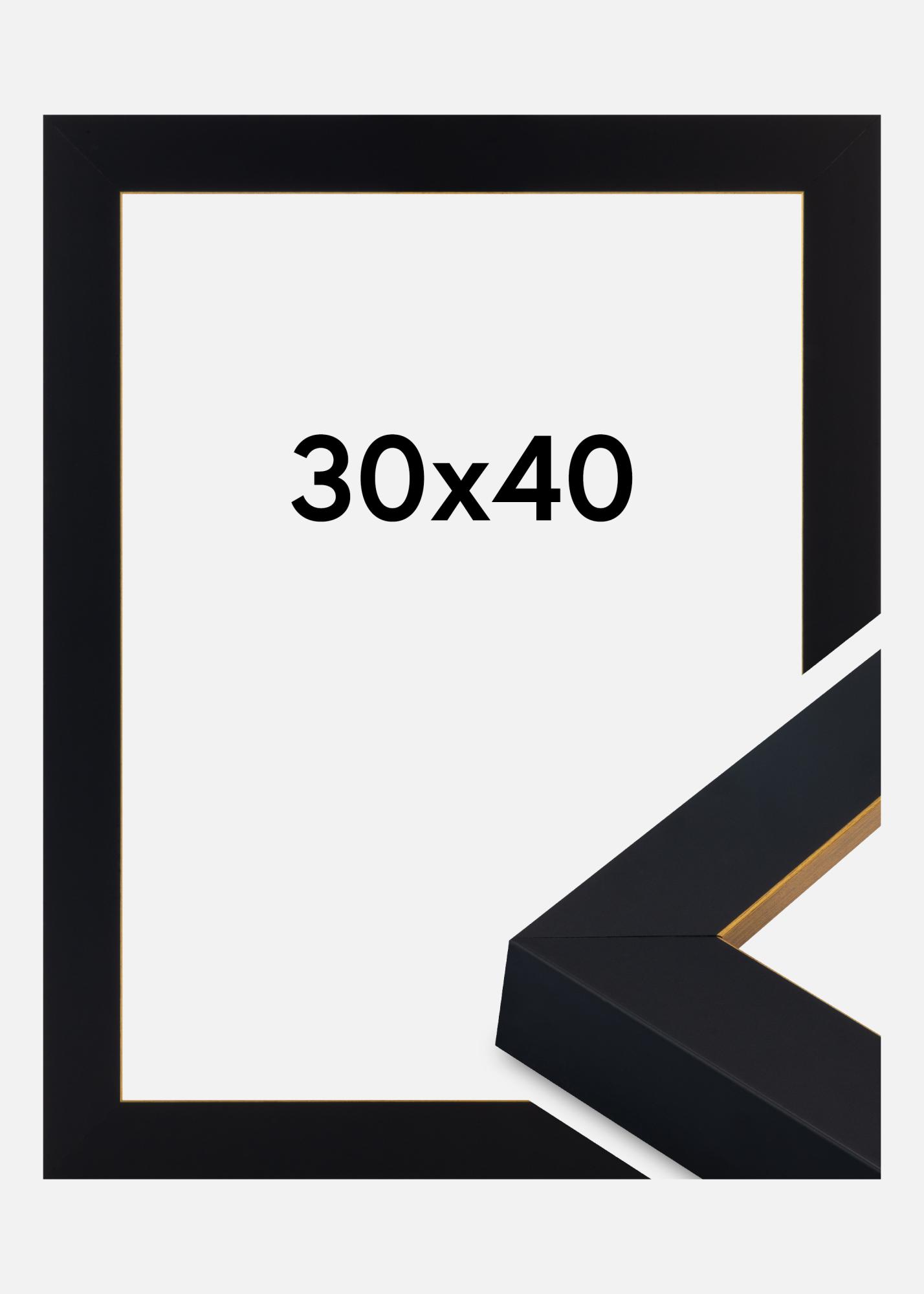 Ta eleganten Okvir za fotografije je popoln za poudarjanje vaših najljubših motivov v velikosti 30x40 cm. Sodobna in prefinjena zasnova združuje gladko, sijočo površino v Črna barvi z elegantnim robom v Zlato odtenku. Ozek profil daje preprost in grafičen videz, ki postavi motiv v ospredje, zato je odlična izbira tako za fotografije kot za plakate.