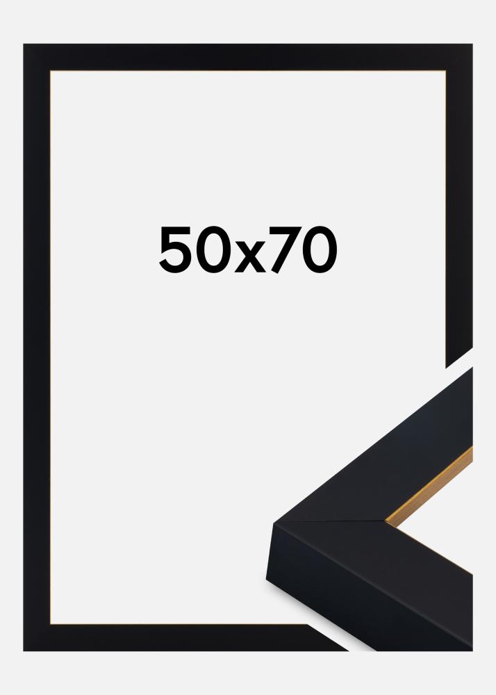 Ta eleganten Okvir za fotografije je popoln za poudarjanje vaših najljubših motivov v velikosti 50x70 cm. Sodobna in elegantna zasnova združuje gladko, sijočo površino v Črna barvi z elegantnim robom v Zlato barvi. Ozek profil daje preprost in grafičen videz, ki omogoča, da motiv ostane v središču pozornosti.